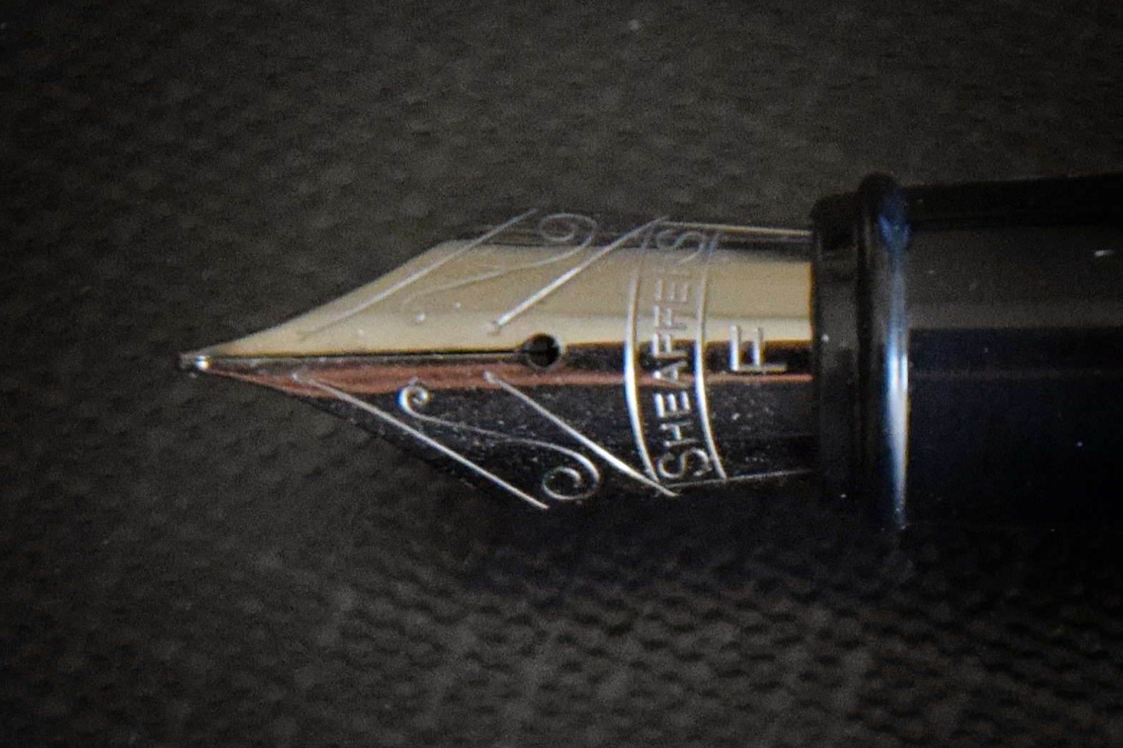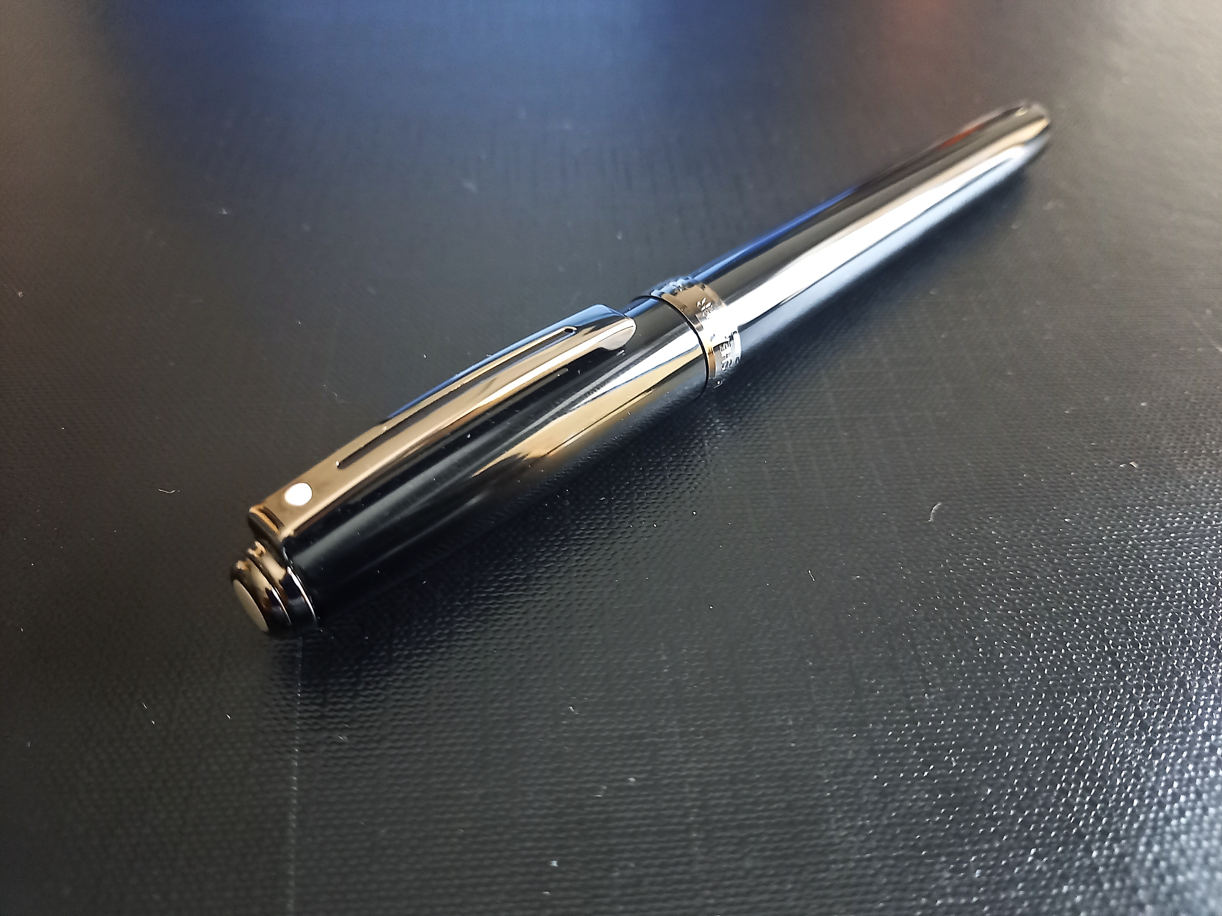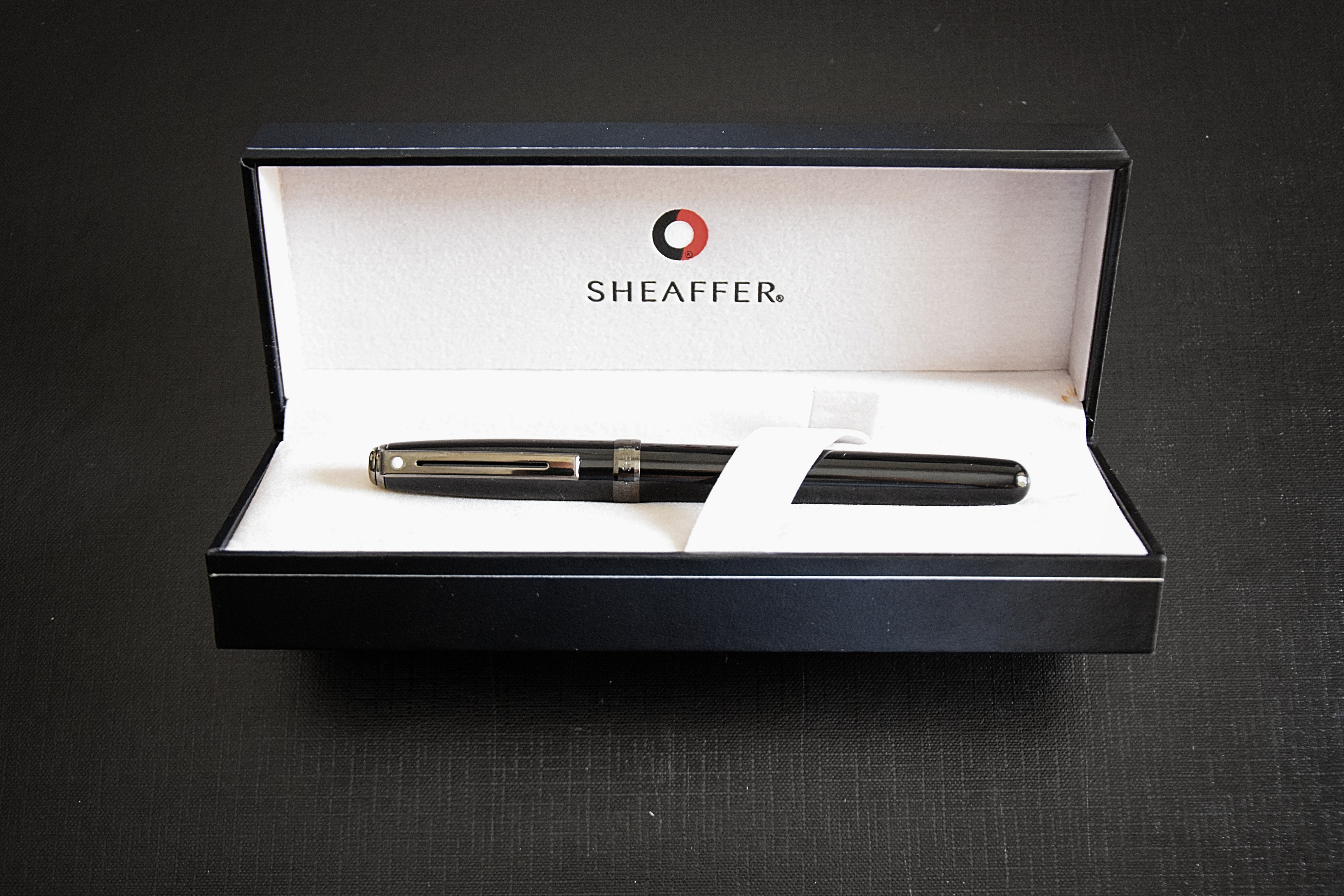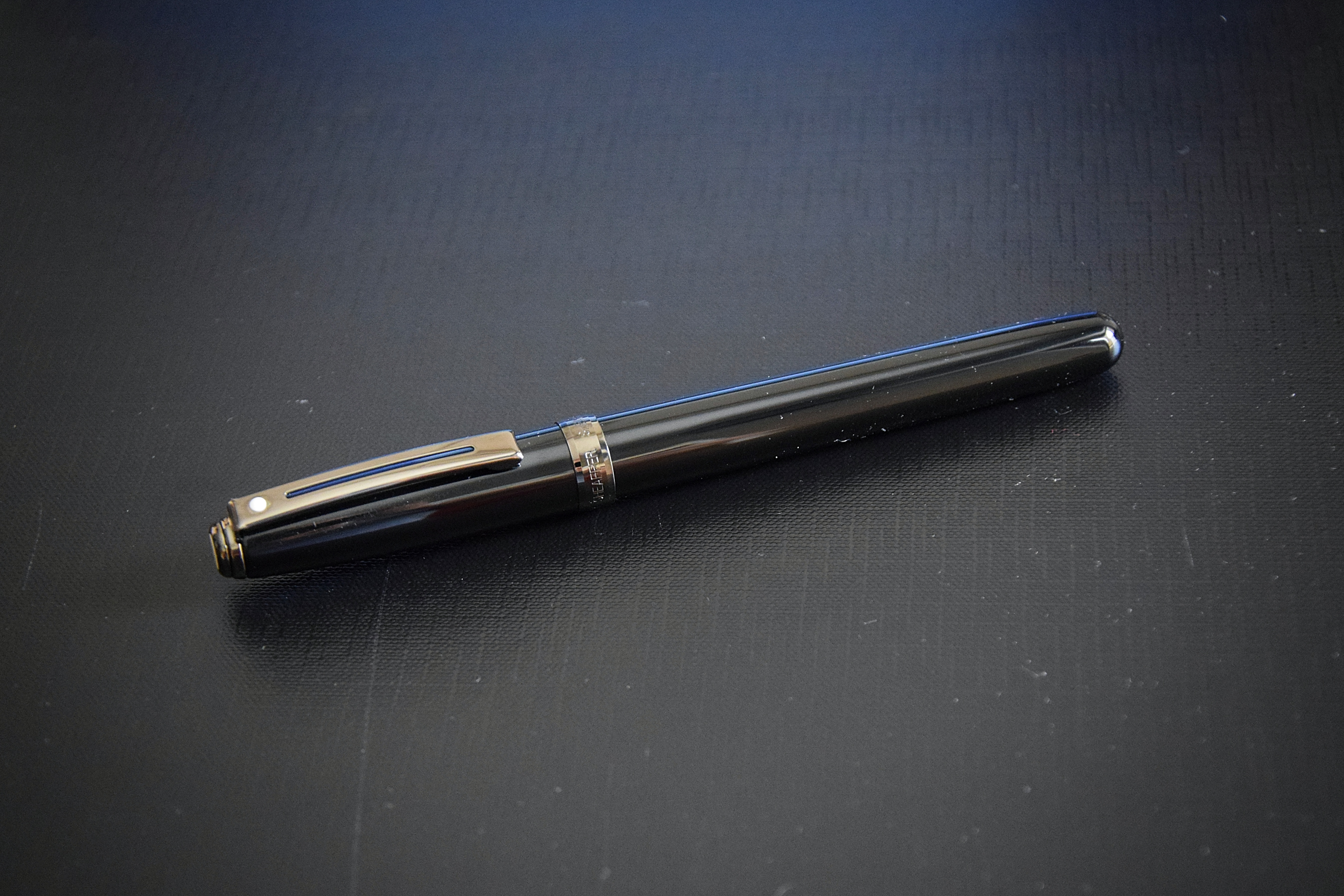 La penna chiusa è, a mio parere, esteticamente molto bella. Ha un design molto semplice e la forma ricorda la Parker Sonnet, con cui presenta molte similitudini. È in metallo di colore nero lucido, con finiture brunite. Presenta il tipico puntino bianco sia sulla clip sia nella parte superiore del cappuccio, il quale termina con una fascetta di metallo brunito su cui è incisa la scritta SHEAFFER per quattro volte consecutive.