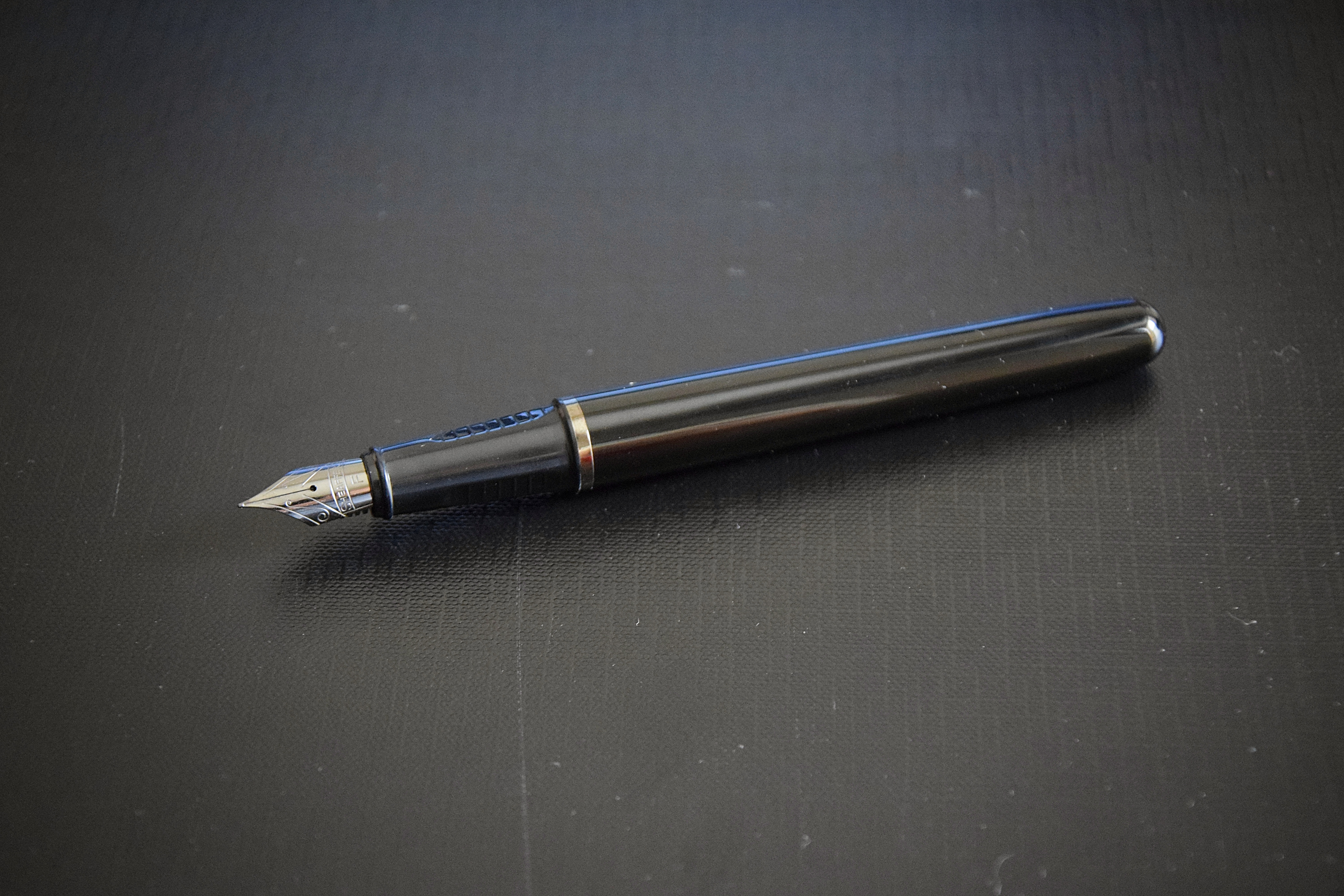 Il pennino si comporta, effettivamente, come un fine occidentale. È rigido, quindi non si notano particolari variazioni di tratto, se non premendo particolarmente forte sul foglio. Mettendo il pennino al contrario, si può ottenere un tratto più simile a un fine giapponese, ma l’impugnatura risulta più scomoda e la scrittura meno agevole, dato che non è possibile sfruttare le apposite scanalature che guidano le dita.