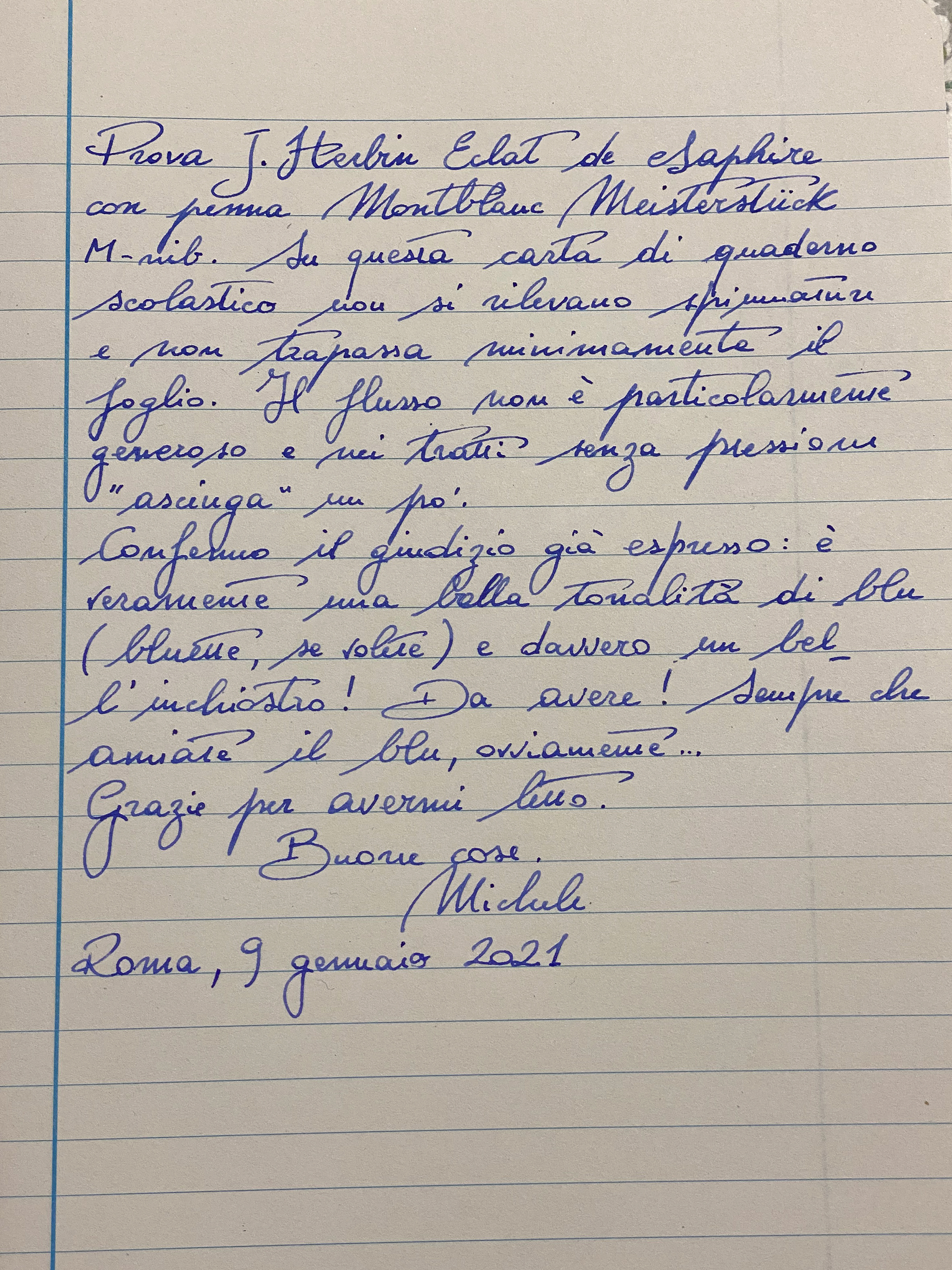 Una alternativa valida è il Sapphire blu di Diamine, ma il JH mi piace un pelo di più.