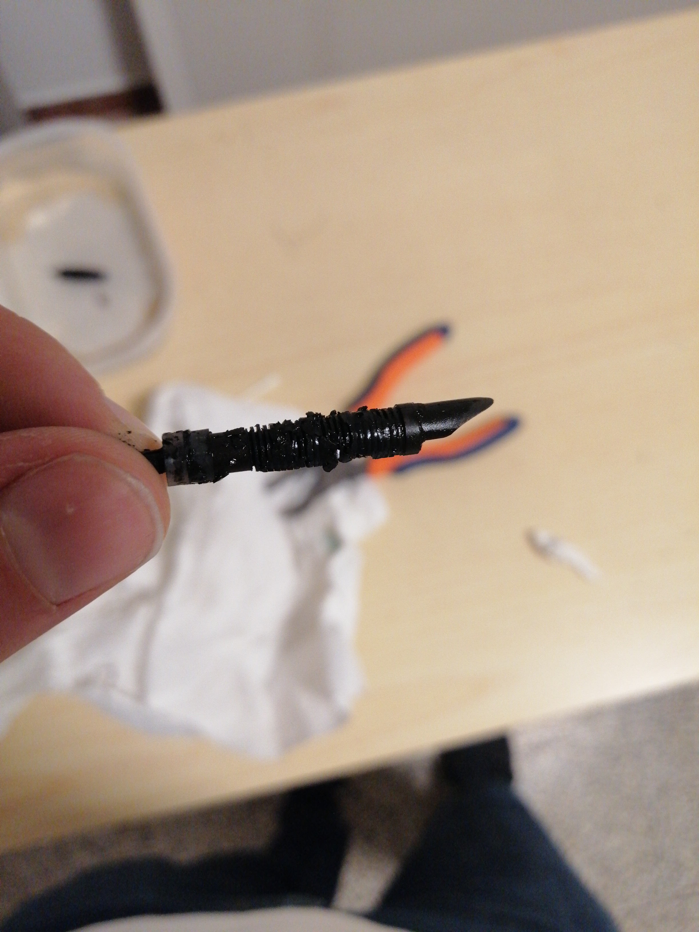 Tiro il pennino e...mi resta in mano! Ottimo, provo a tirare l'alimentatore direttamente dal becco ma niente... ho dovuto usare un paio di pinze per tirarlo fuori, non mi era mai successo ma probabilmente non ho ancora pulitoabbastanza penne XD.