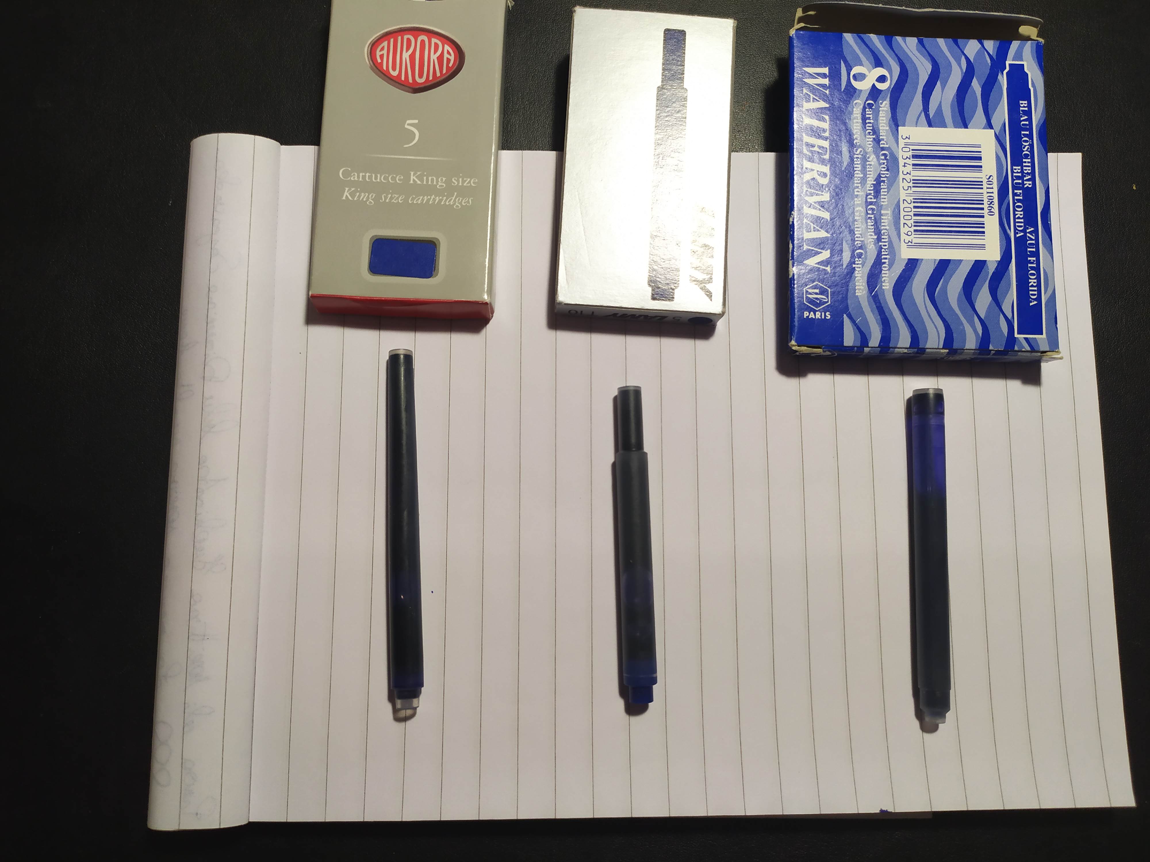 alfred81 ha scritto: lunedì 26 luglio 2021, 1:32 ...sei sicuro che la prima a sinistra sia una cartuccia Aurora? A me sembra una Waterman