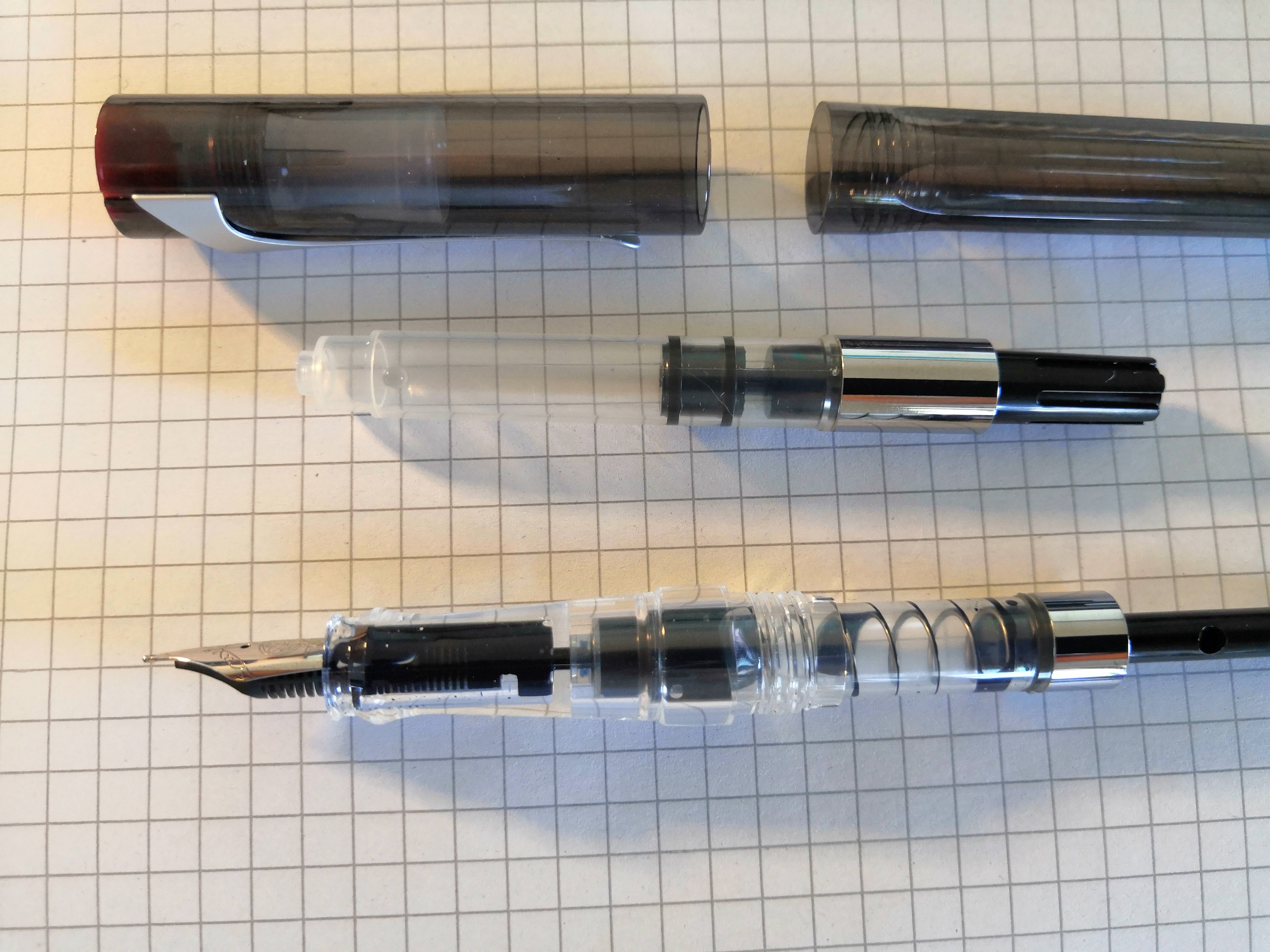Oggi ho potuto ritirare il pacco e ho aperto subito la confezione delle Twsbi. Una con pennino F e l'altra con pennino M. Per il momento ho utilizzato la cartuccia in dotazione, inchiostro nero, molto capiente. Considerazioni: il pennino è all'altezza degli altri, la penna nel suo insieme è un po' leggera avendo il cappuccio e il corpo in normale plastica mentre la sezione è rimasta in policarbonato trasparente. Il costo è di 30 euro ma per sette in più preferisco la Eco a stantuffo.