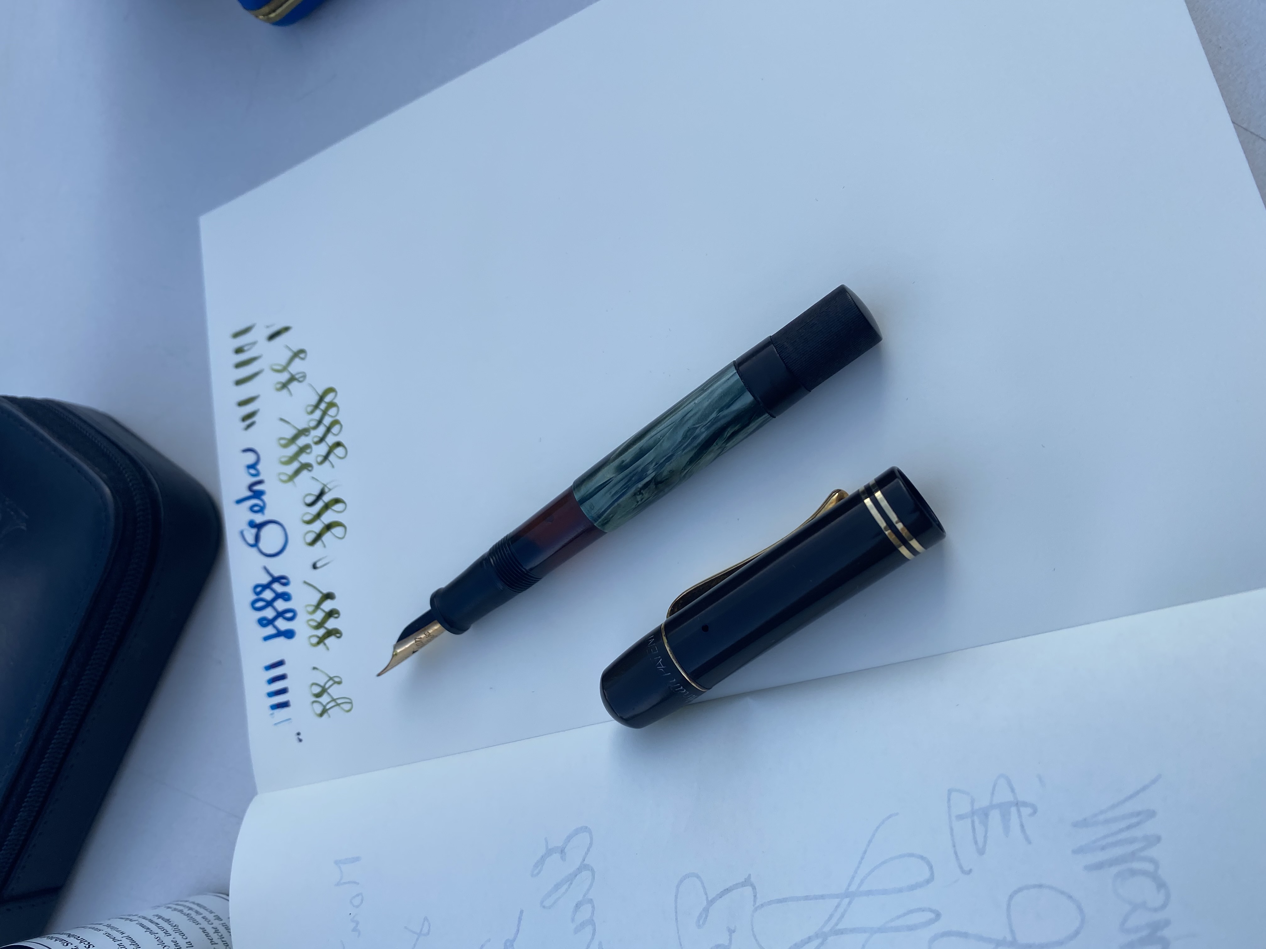 Un incontro dedicato al pennino flessibile ma non ci siamo fatti mancare nulla. Tra i flessibili una piccola Columbus portata da Alecol rinvenuta ad un mercatino, ha dato filo da torcere a penne ben più blasonate. Tra i moderni un pennino Pilot FA e il Calligrahy si sono sicuramente distinti, ma credo che la star sia stata una OMAS Lucens taglia media, penna che tuttavia si presenterebbe poco pratica per un uso quotidiano.
