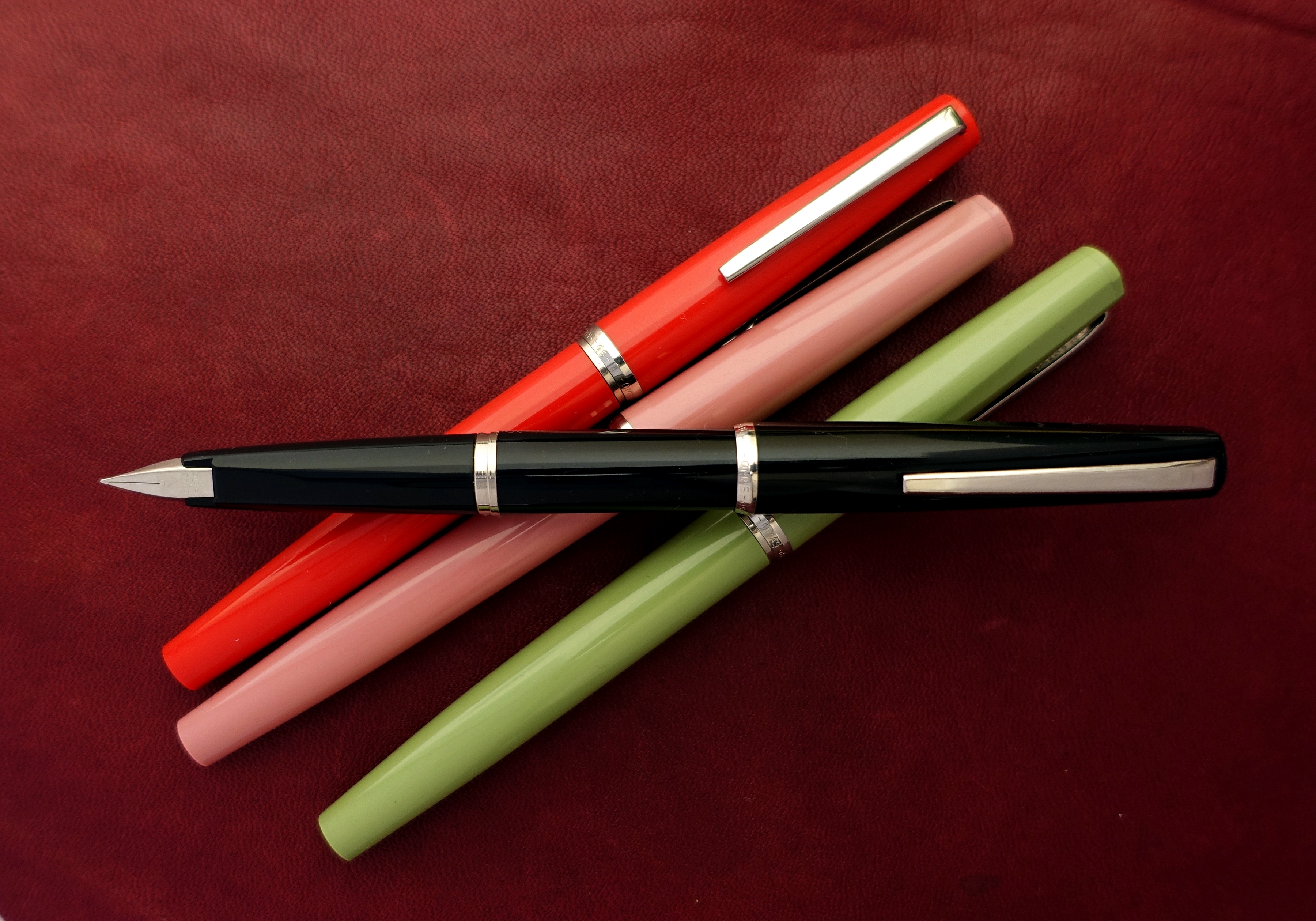 Rispondo alla domanda iniziale: ne ho qui un esemplare nero. Dopo una prova fugace al momento del ritrovamento con una cartuccia Pelikan, era rimasto abbandonato per molto tempo: il tratto era talmente scarso che temevo che il pennino fosse ostruito, o i rebbi fossero eccessivamente vicini. Pulizie accurate non avevano avuto effetto.