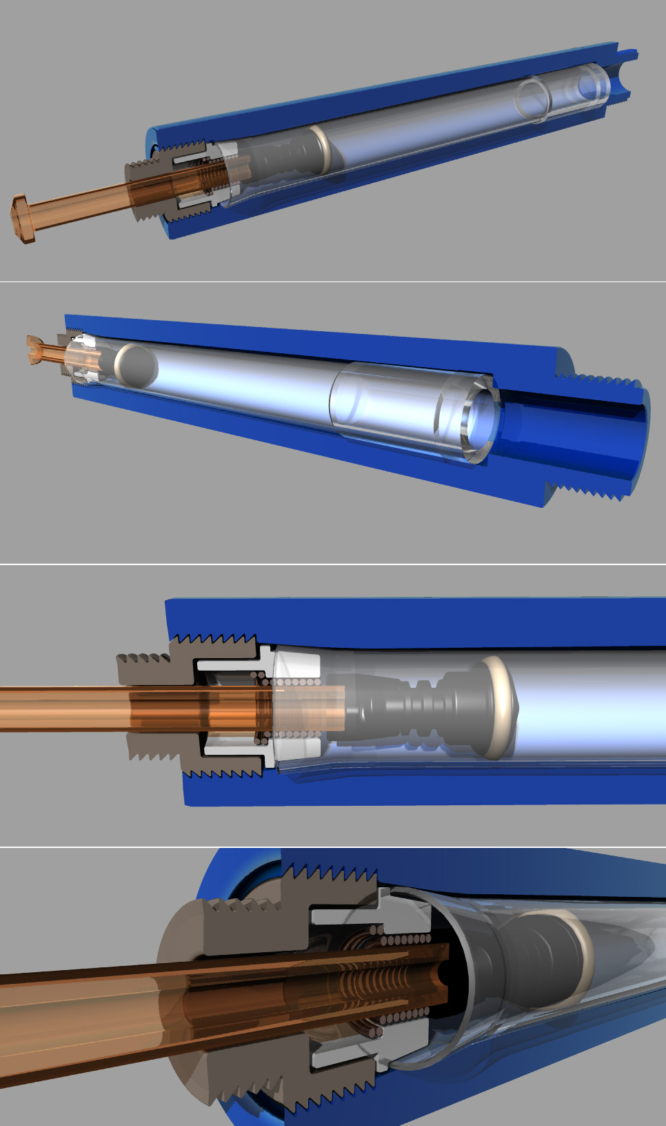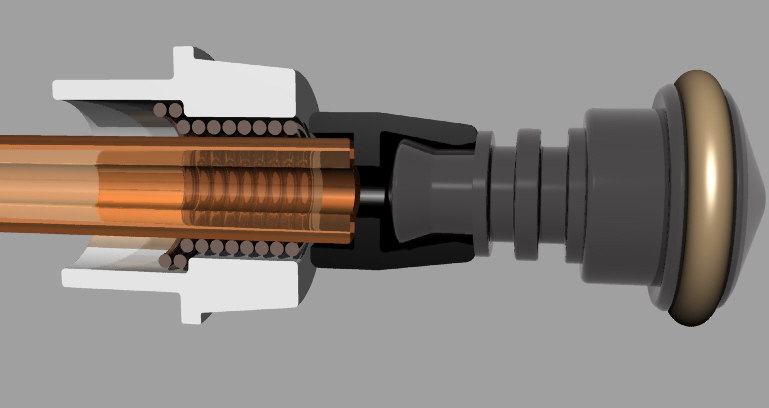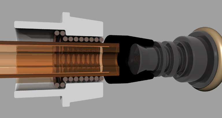 Ho quindi pensato di inserire un cilindro interno trasparente, (come nel caso dei motori delle auto) e la verità è che mi ha dato ottimi risultati. L'unico segreto è posizionare un secondo cilindro trasparente vicino all'impugnatura, che funga da complemento e supporto, in modo che quando si avvita l'anello conico in alluminio, il manicotto non ceda e il labbro si dilata, generando una tenuta tra il corpo e il labbro della camicia.