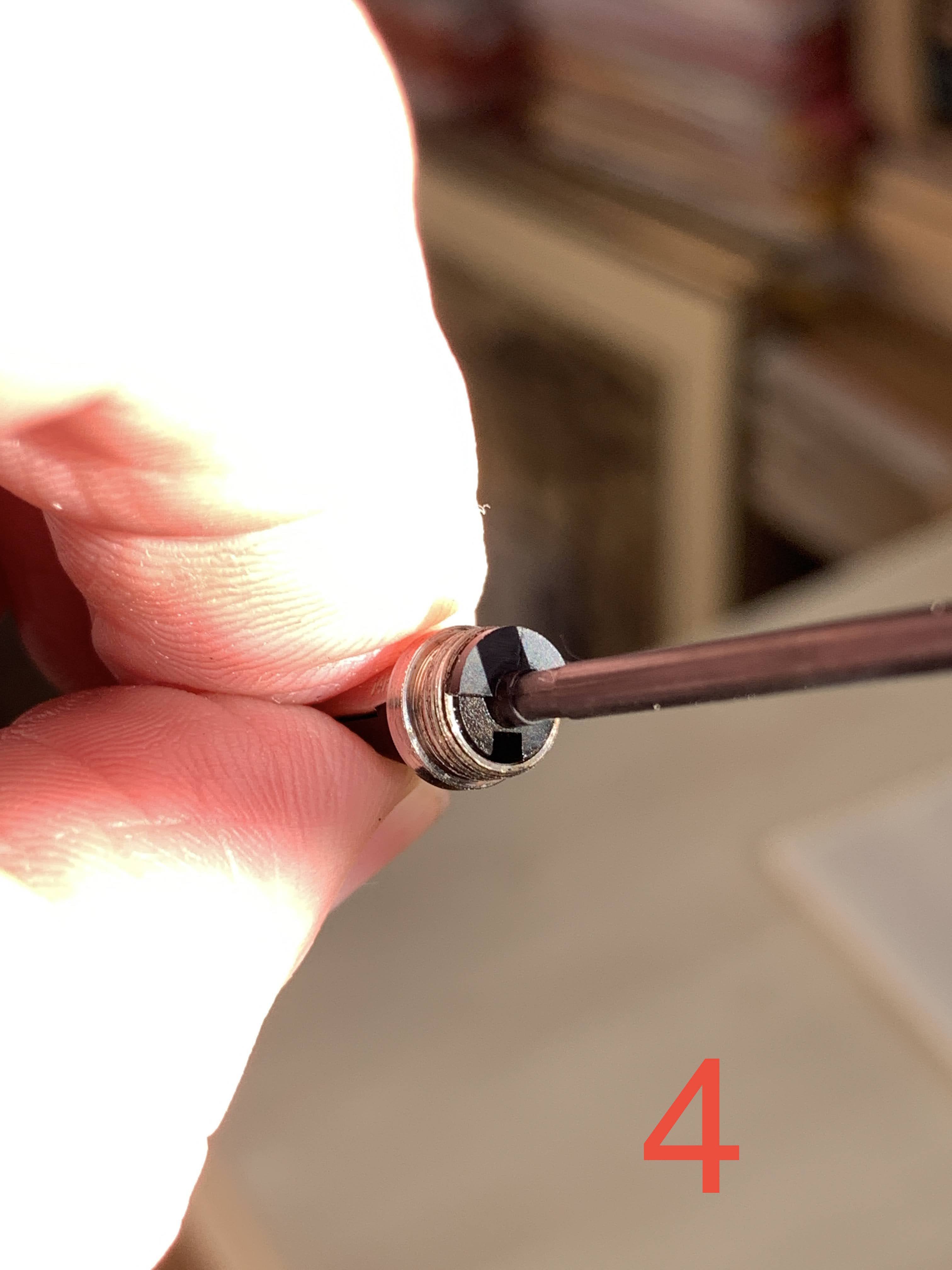 Non so se sia successo perché è stata troppo in bagno, ma l’asticciola col pennino si è sfilata praticamente da sola dall’alimentatore (foto 3), così mi sono potuto rendere conto che le “rotazioni maligne” sono due:
