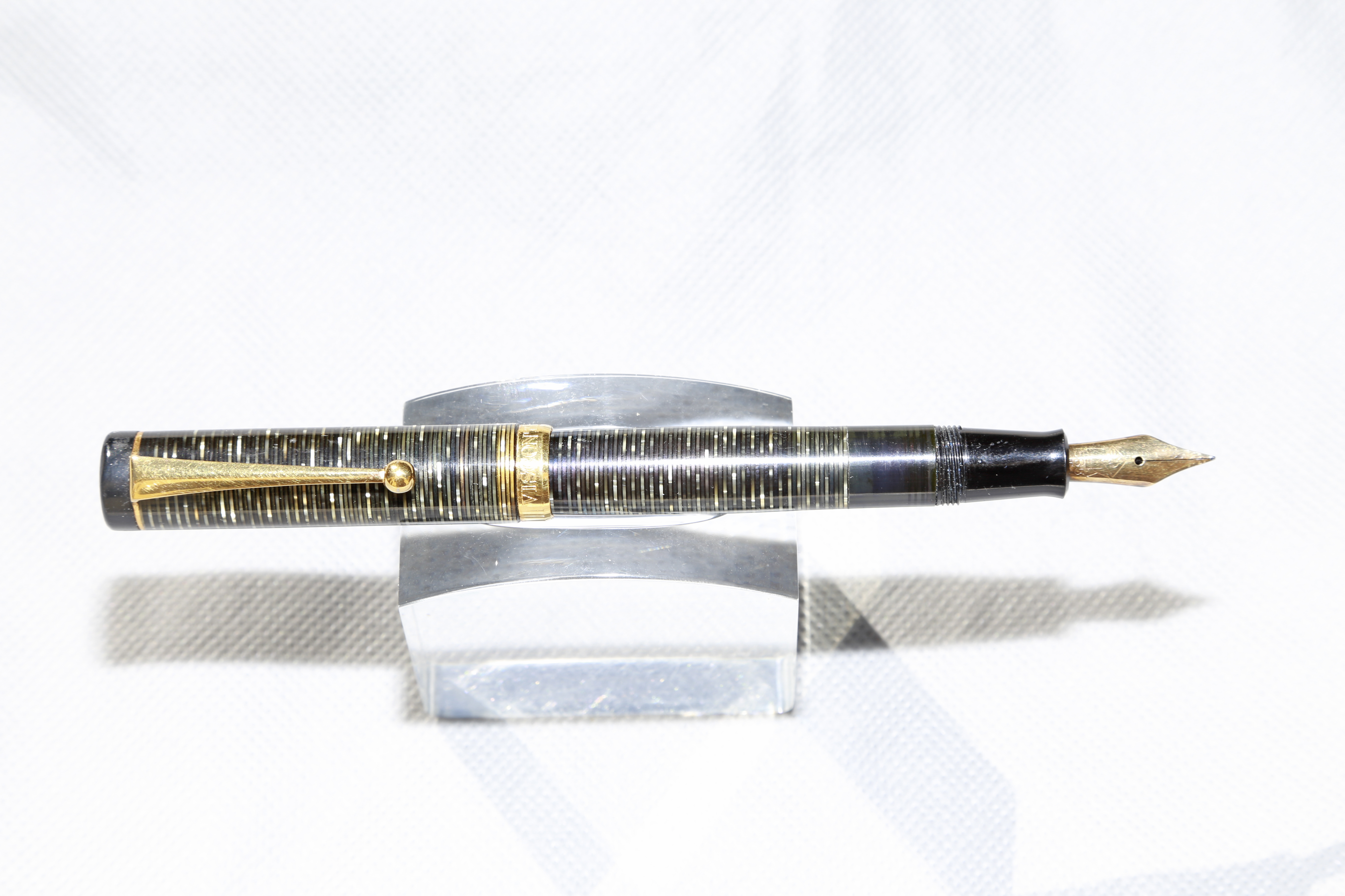 "La penna in questione è una D’Essai in celluloide antica, degli anni ’30. Il pennino è l’originale che montavamo all’epoca, è in oro 14kt.