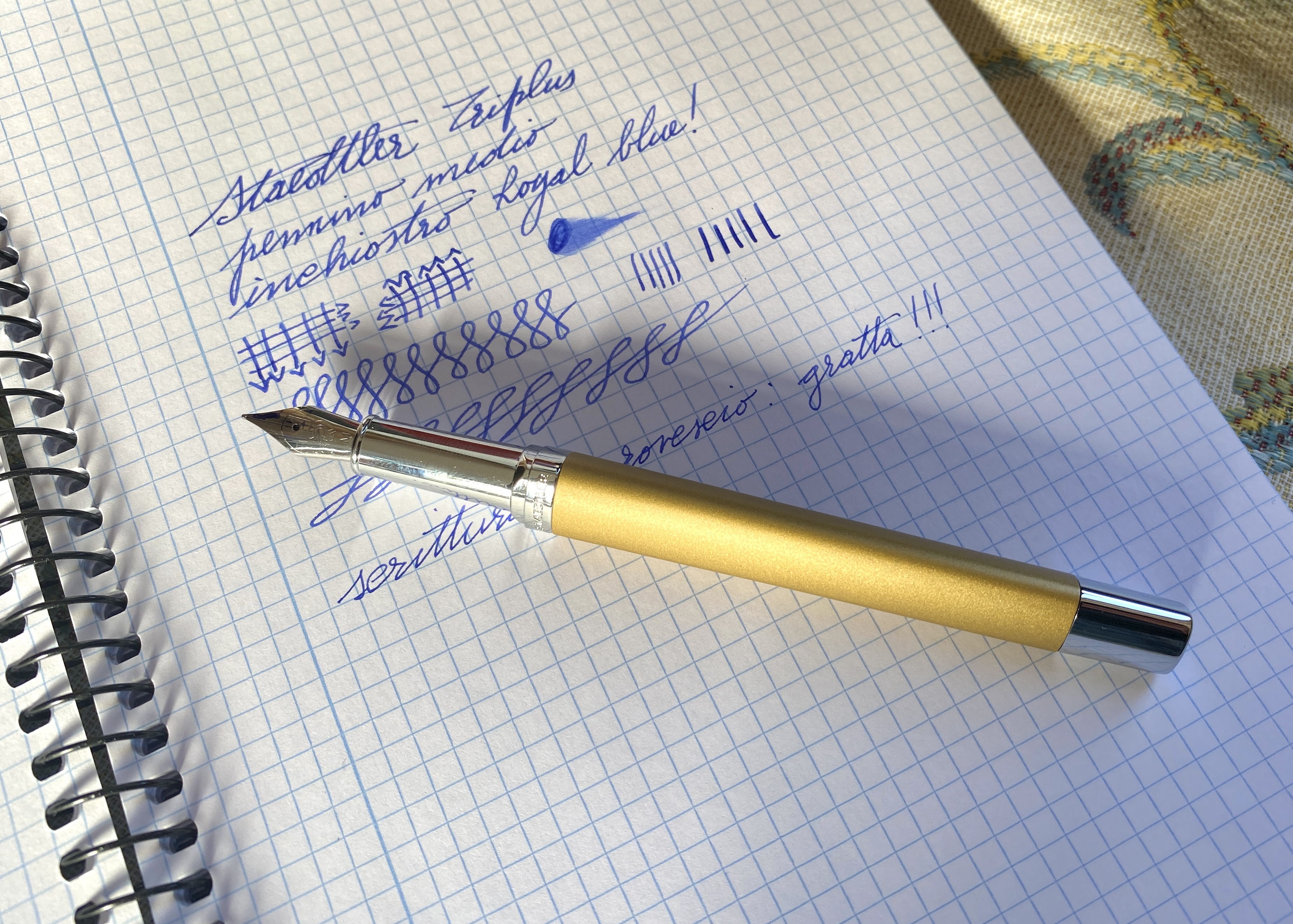 La staedtler usa dei pennini in acciaio che scrivono veramente bene. Ho già una Corium Hurbes con pennino F a cui ho affiancato una Triplus con pennino M.