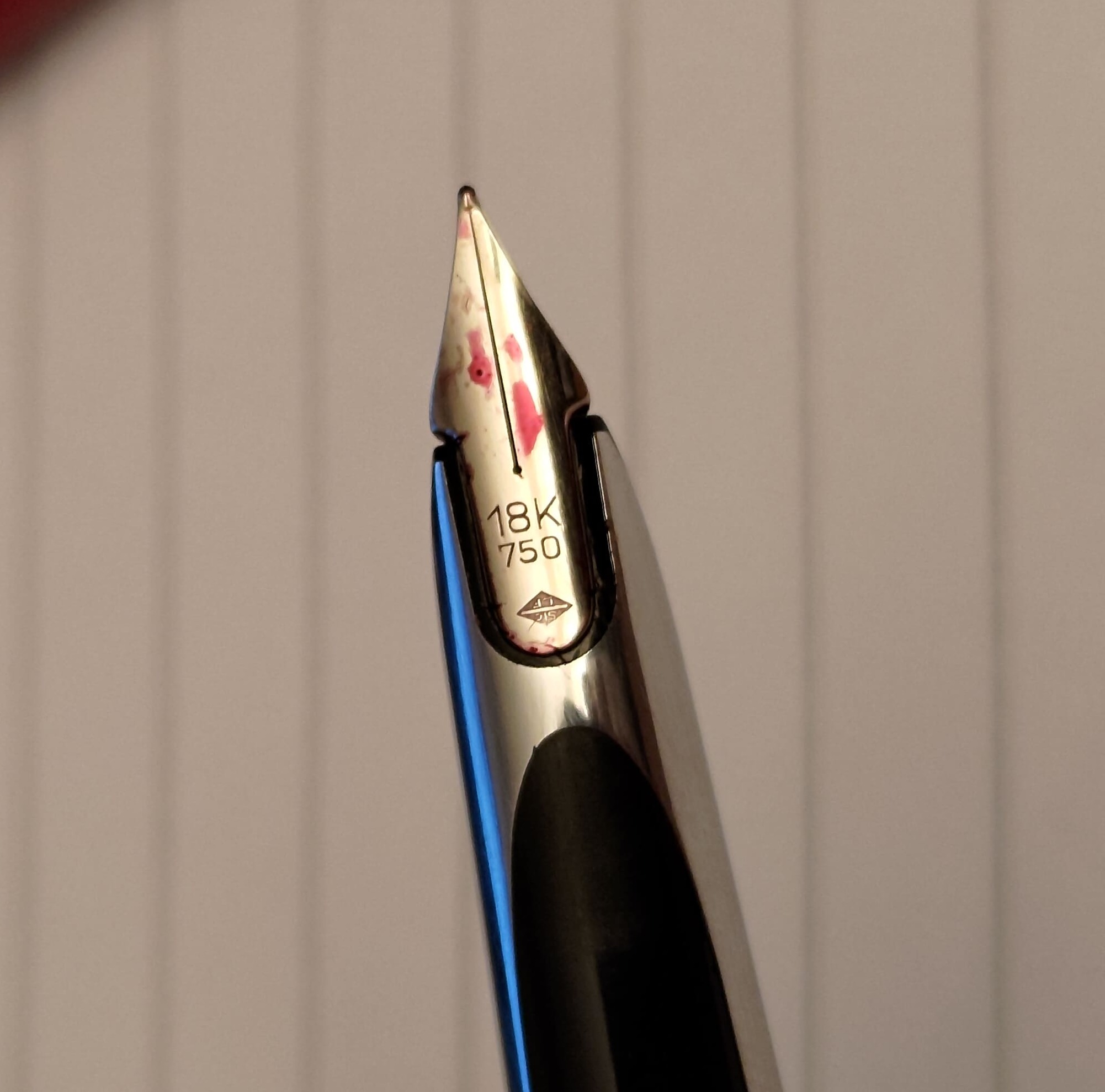 Non avendola mai provata prima non prenderla come verità assoluta ma secondo me si, l'ha resa un po' più generosa. Il tratto è sempre un F ma non gratta particolarmente il foglio quando è inchiostrata; considerando quanto è rigido e stretto il pennino la "modifica" le ha fatto guadagnare in lubrificazione (se così si può dire).
