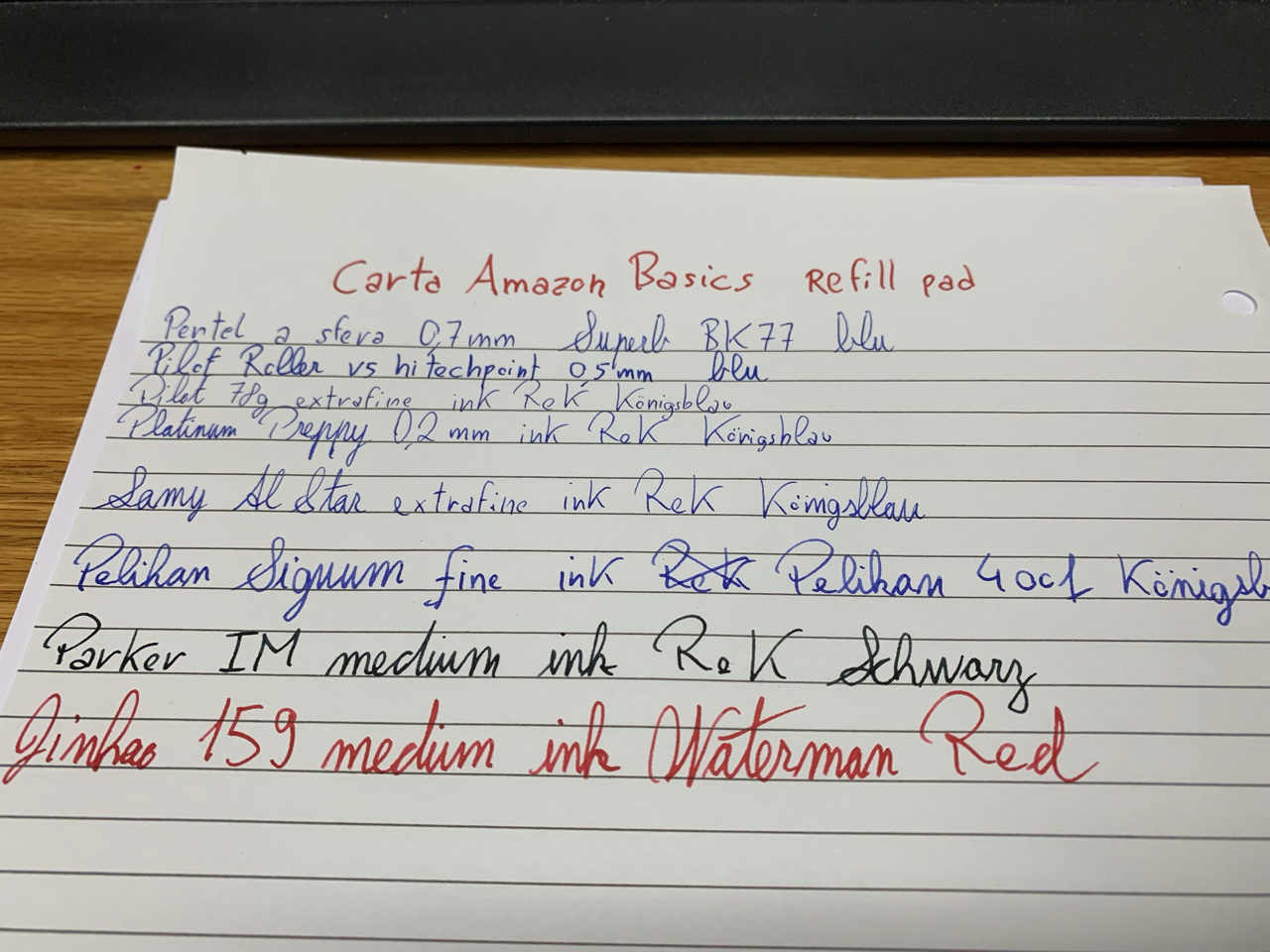 Visto che mi era stato chiesto posto la carta Amazon che uso con soddisfazione per scrivere con le mie penne stilografiche. È un acquisto di qualche anno addietro, non posso garantire che la qualità sia ancora la stessa.