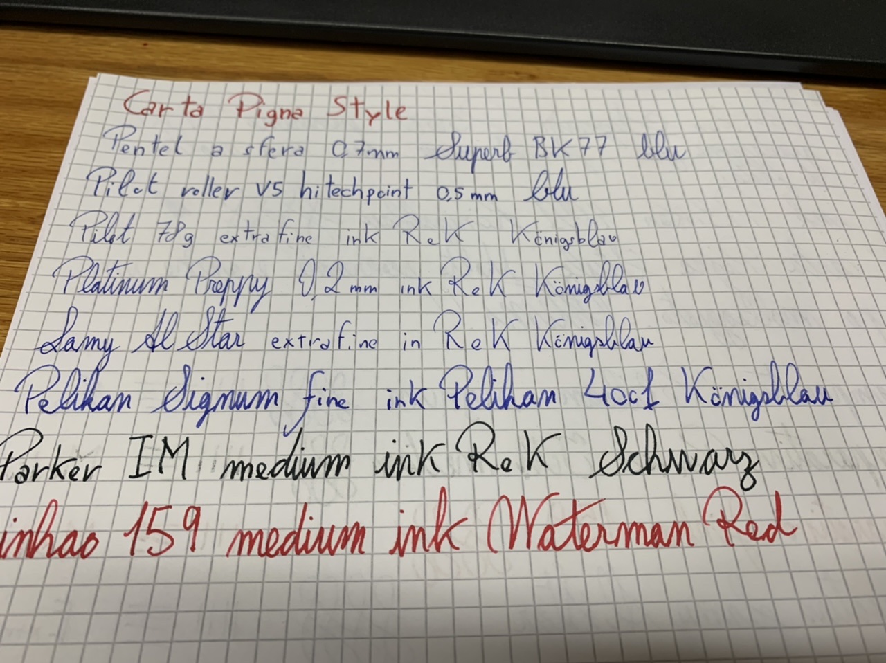 Io su questi fogli riesco a usare decentemente la preppy 0,3 e l’Aurora Style col pennino F , tutto il resto più va verso il fine più diventa spiacevole da usare, più va verso il broad e più diventa sciatto come effetto.