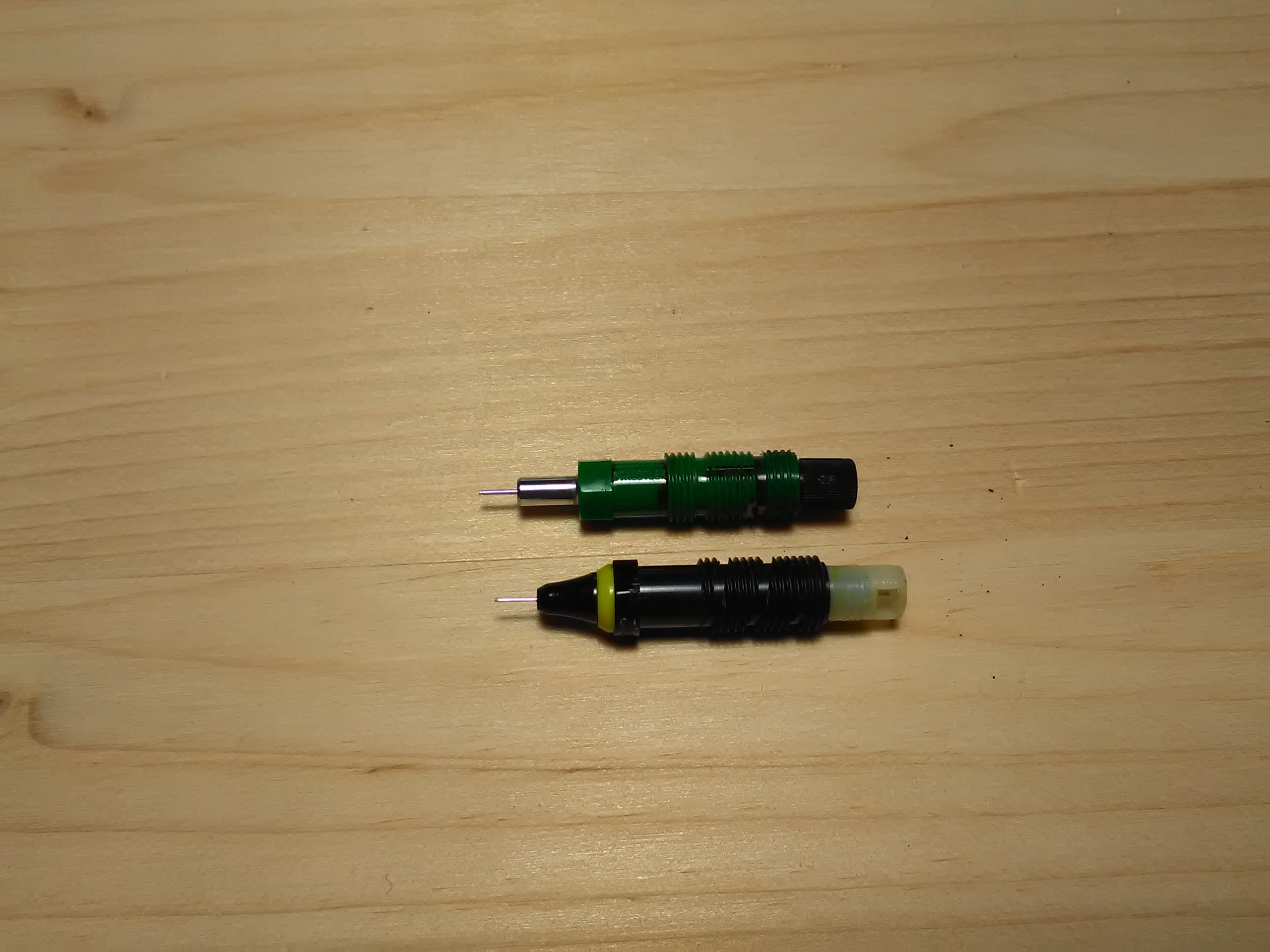 Quando la china si seccava diventava come il carbone e le "croste" venivano via solo con lo specifico diluente. L'alternativa ero lo smontaggio del pennino con la rimozione meccanica dei residui. Particolare attenzione dovevi metterla nel montaggio perché era un attimo piegare il filo metallico soprattutto nei diametri 0,1 - 0,15 e 0,2. Se si piegava dovevi raddrizzarlo perfettamente altrimenti non scorreva nel tubicino. Che tempi quelli del binomio china - lucido, poi la lametta e il "radex", non li rimpiango ma non li dimentico.