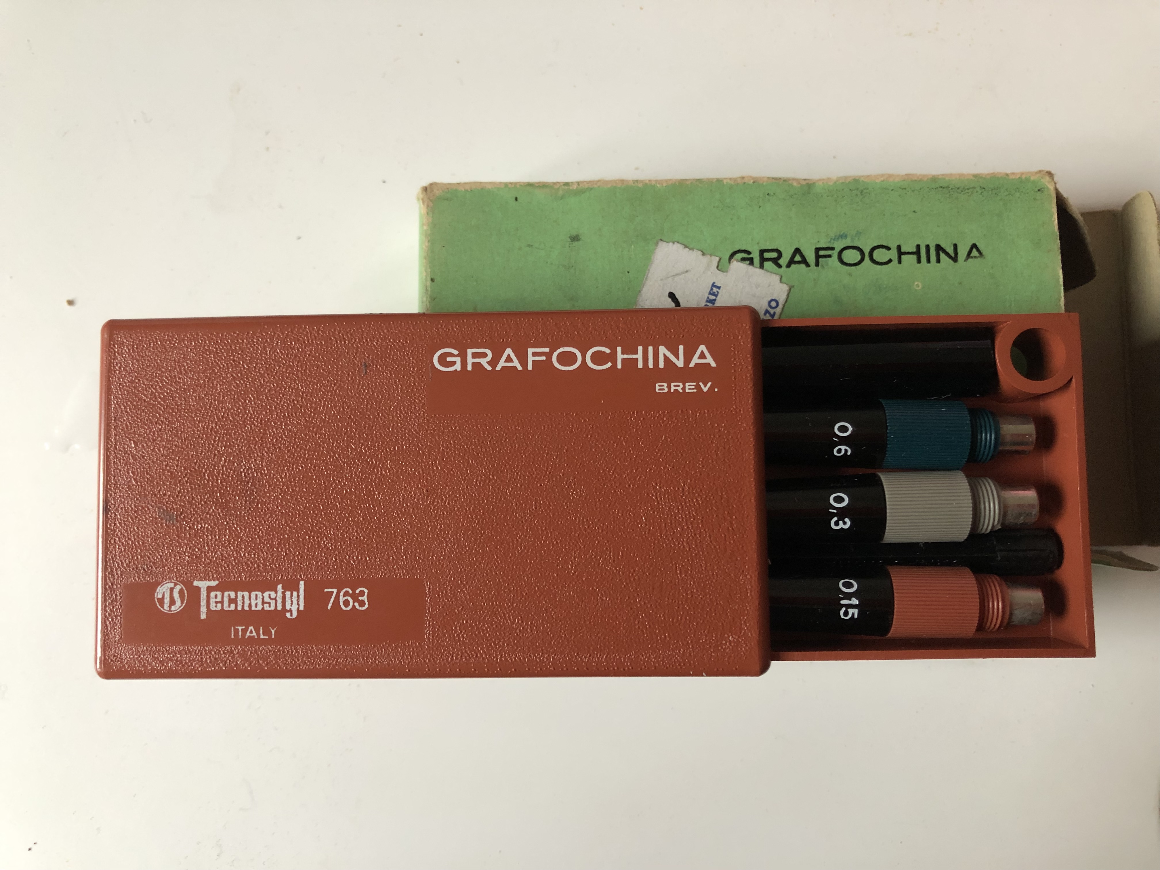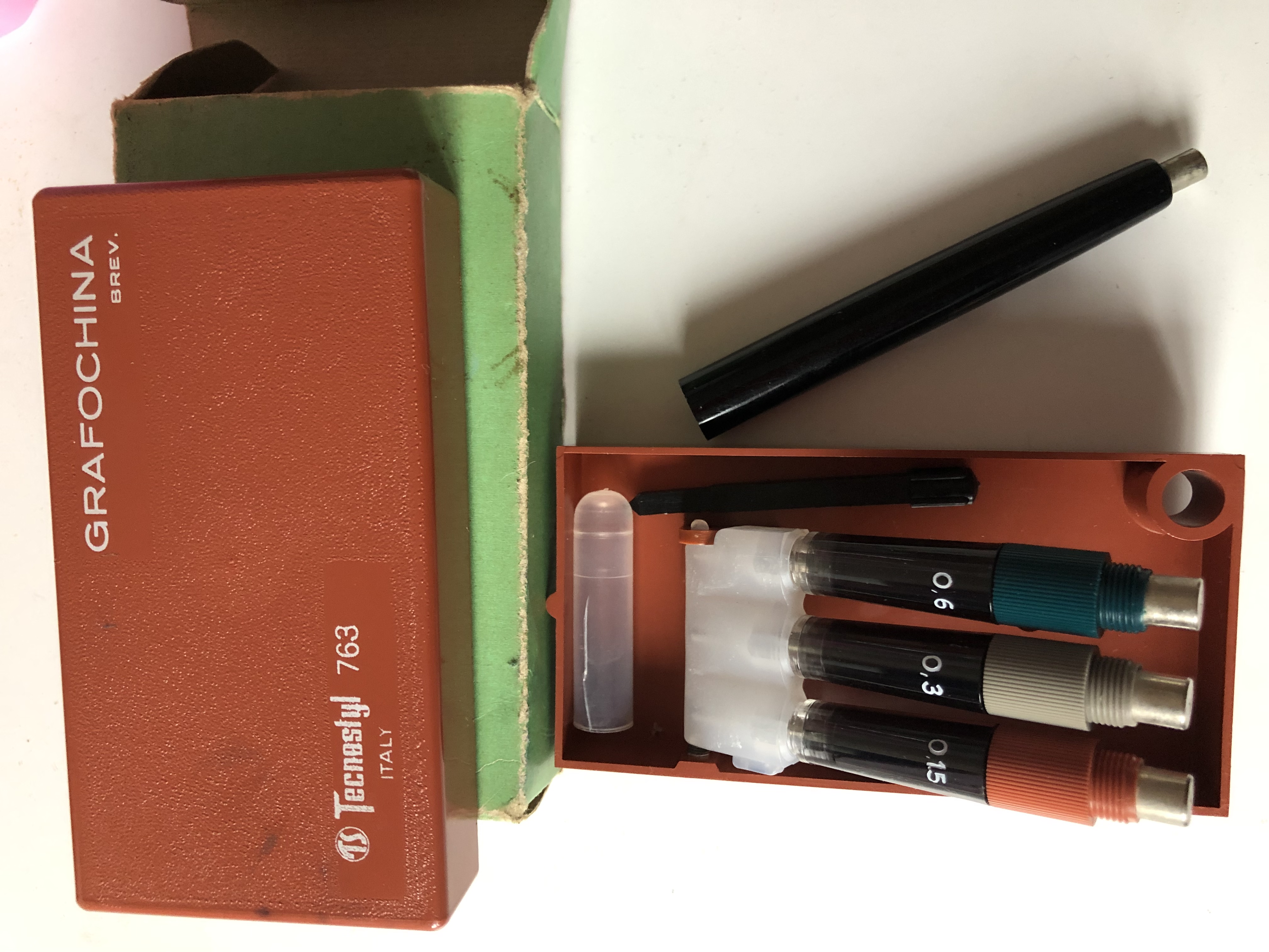 Ispirato dal precedente tread, sono andato a cercare i miei vecchi rotring senza peraltro trovarli, ho però recuperato questo set tascabile Grafochina di mio padre, credo mai utilizzato.