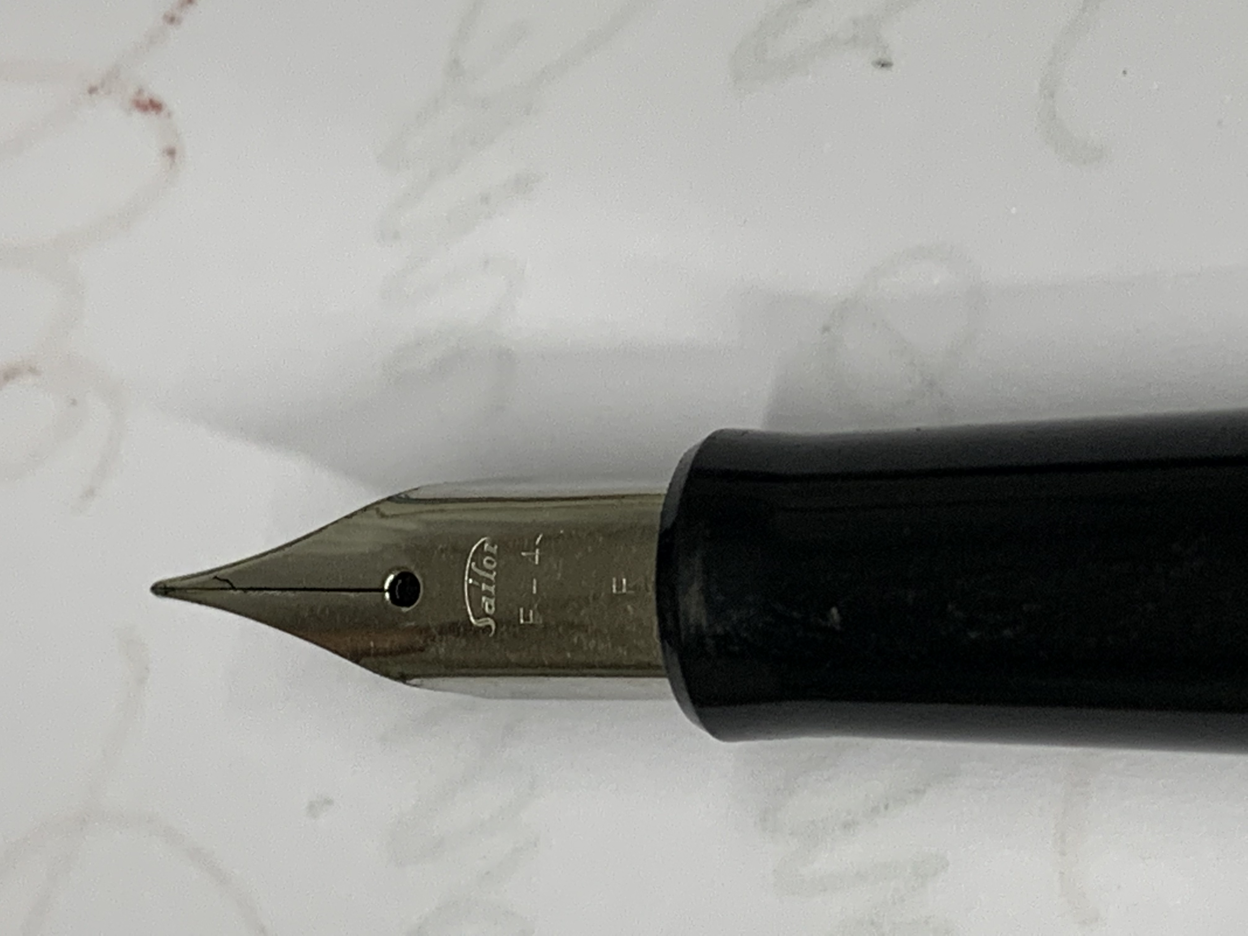 Sul pennino invece c’è inciso “Sailor F-4” e poi l’indicazione della gradazione del pennino “F”.