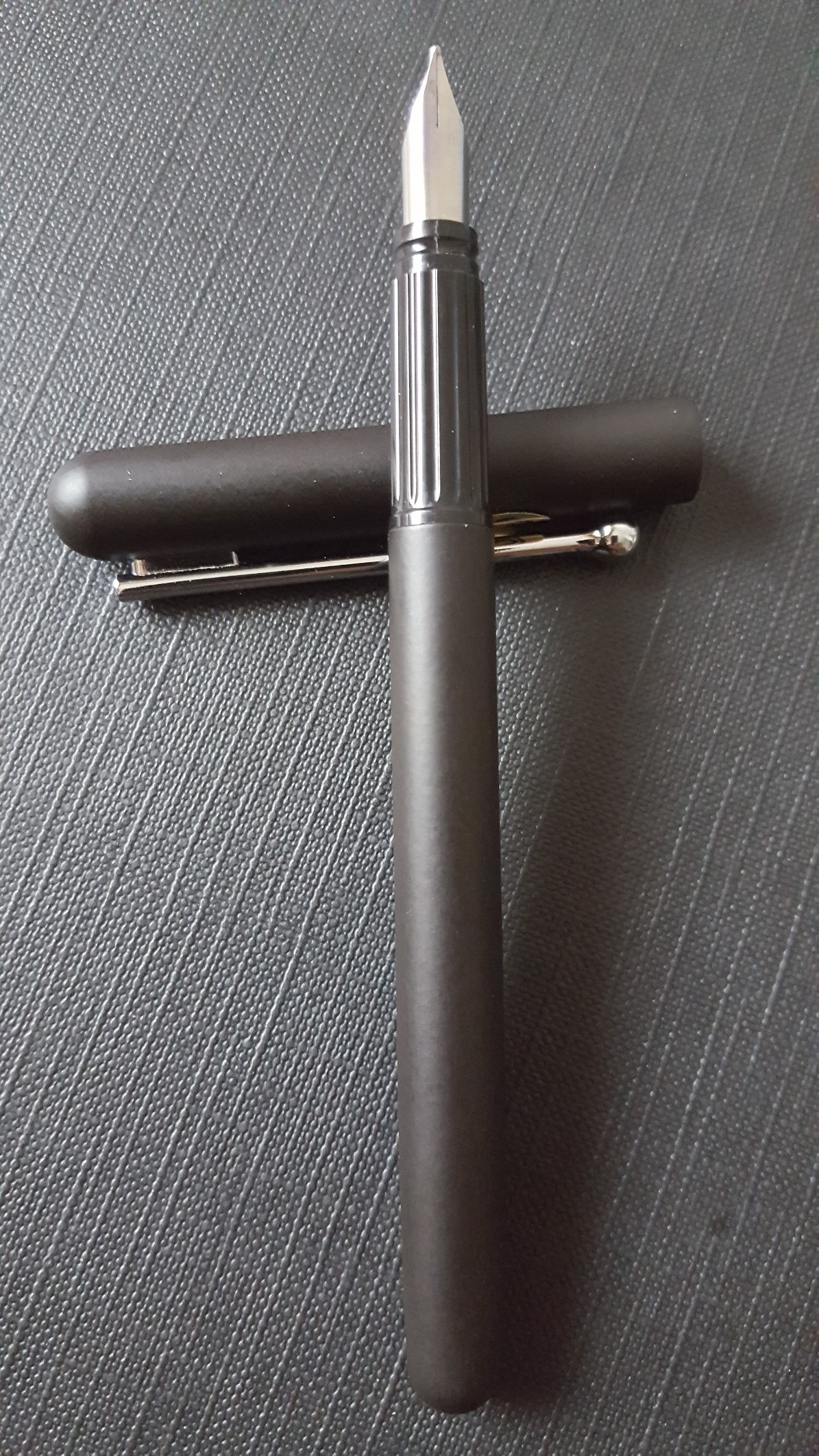 Credo che l'ultimo acquisto di quando ancora compravo penne solo perché offerte ad un buon prezzo sia stato questo. Non si può dire che sia bella ma scive piuttosto bene (ma troppo abbondante per me, credo si tratti di una M).