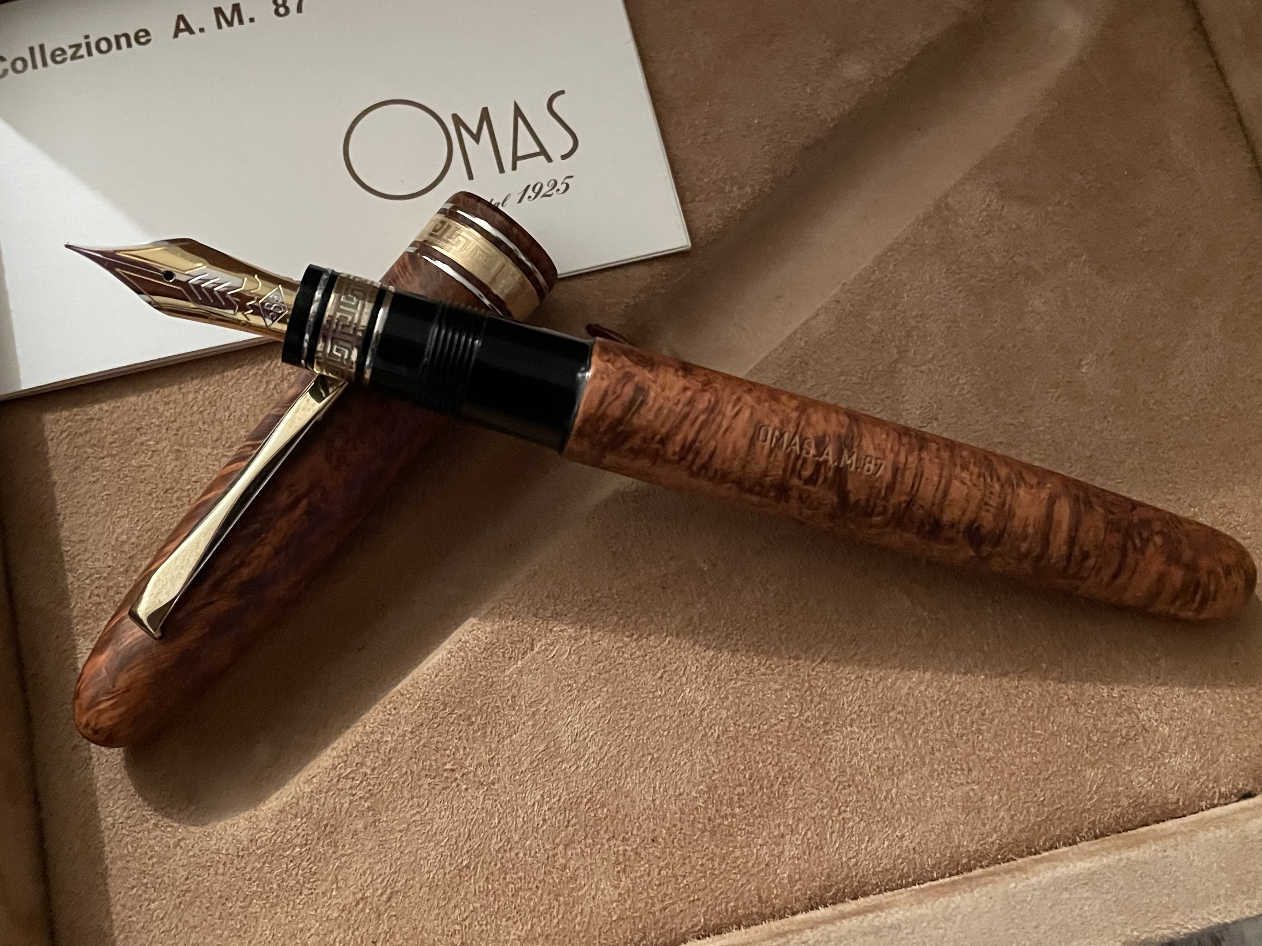 Da quello che so AM sta per Angelo Malaguti che ideó questo modello. 87 è plausibile sia l’anno di inizio produzione.fufluns ha scritto: ↑domenica 12 dicembre 2021, 14:17 È una penna di una bellezza mozzafiato, con livelli di finiture impressionanti. Complimenti! Dalla fotografia il pennino sembrerebbe un extra-fine, che OMAS sapeva fare perfetti. Dev’essere un piacere da usare.