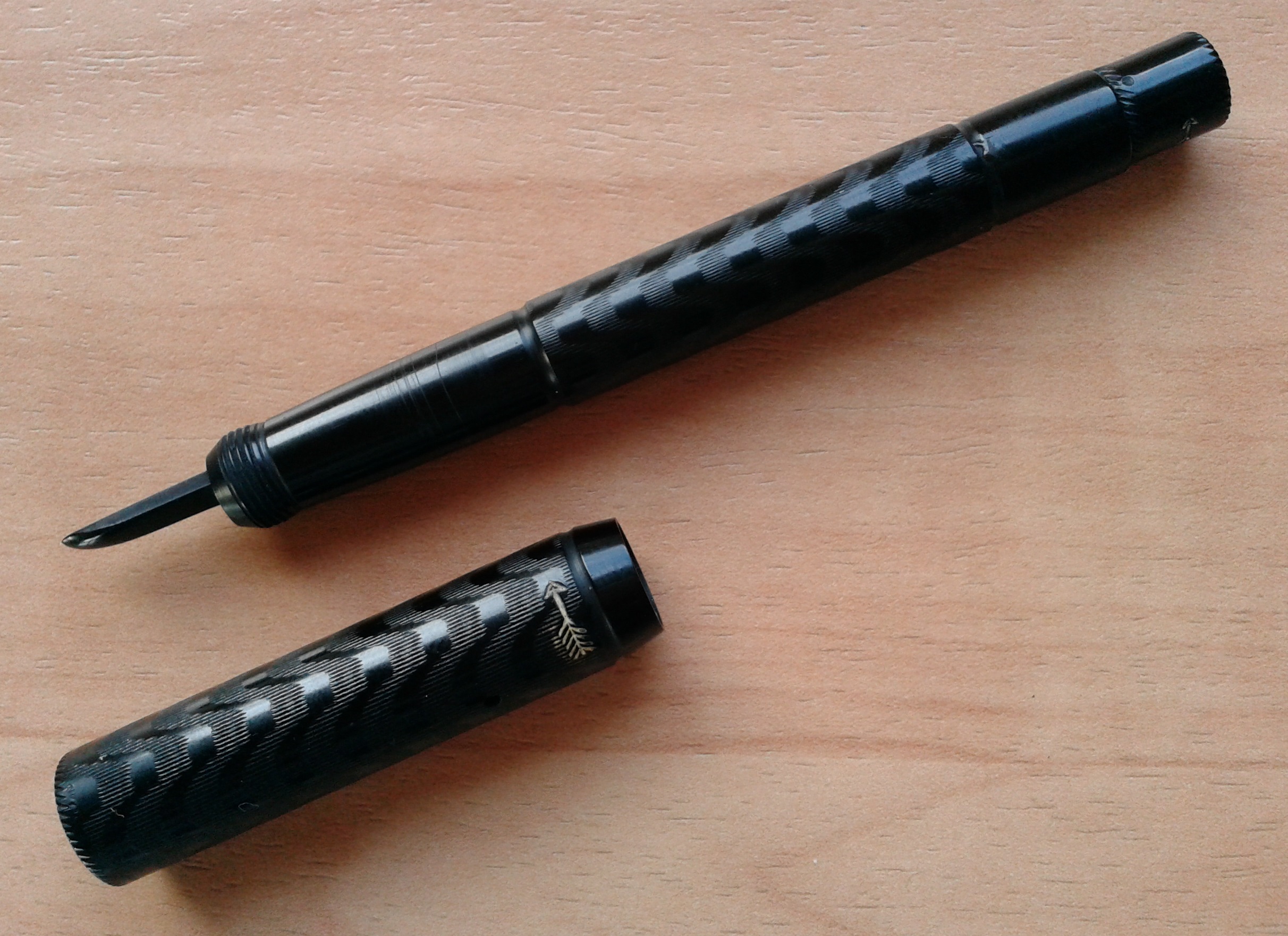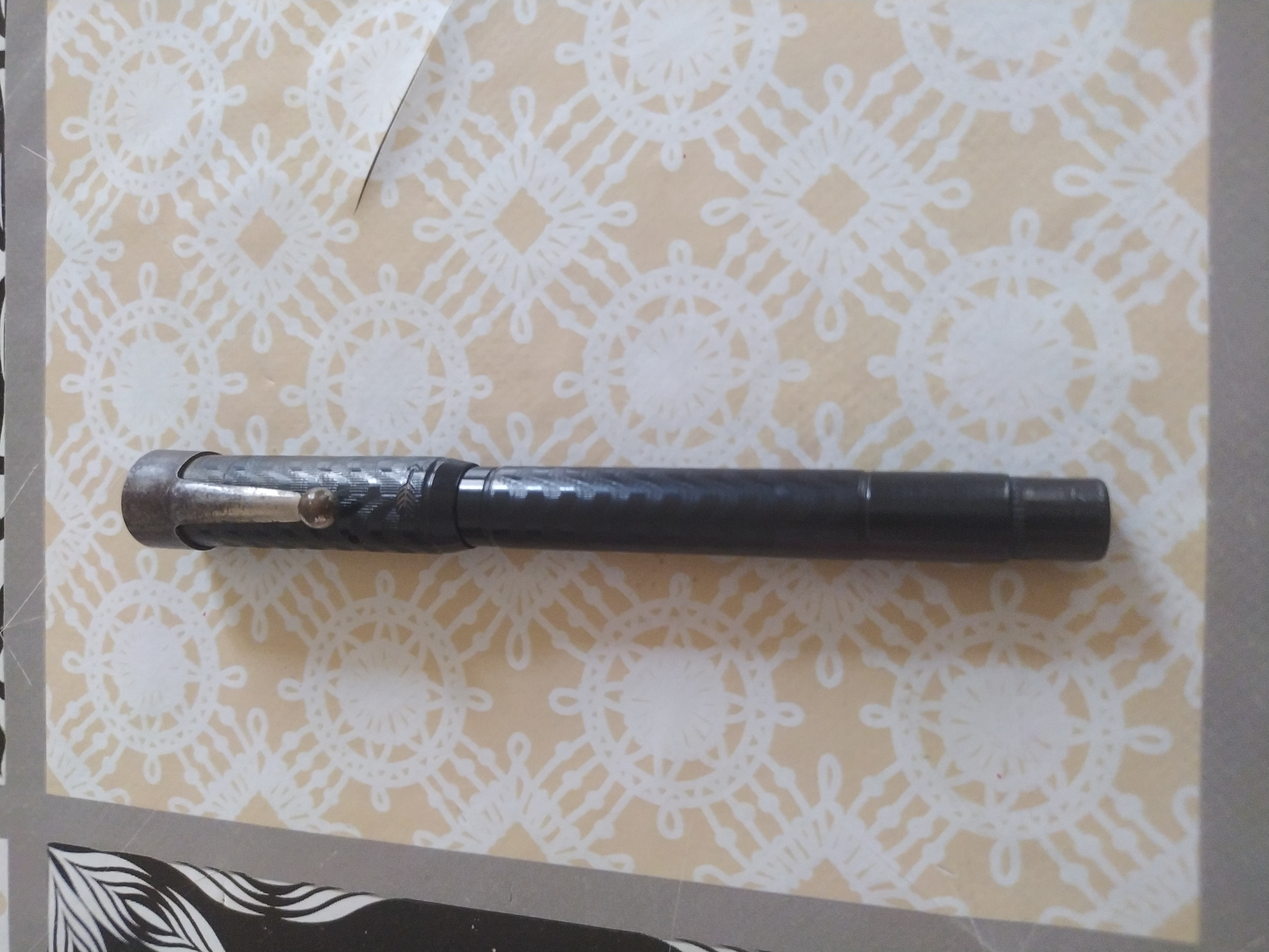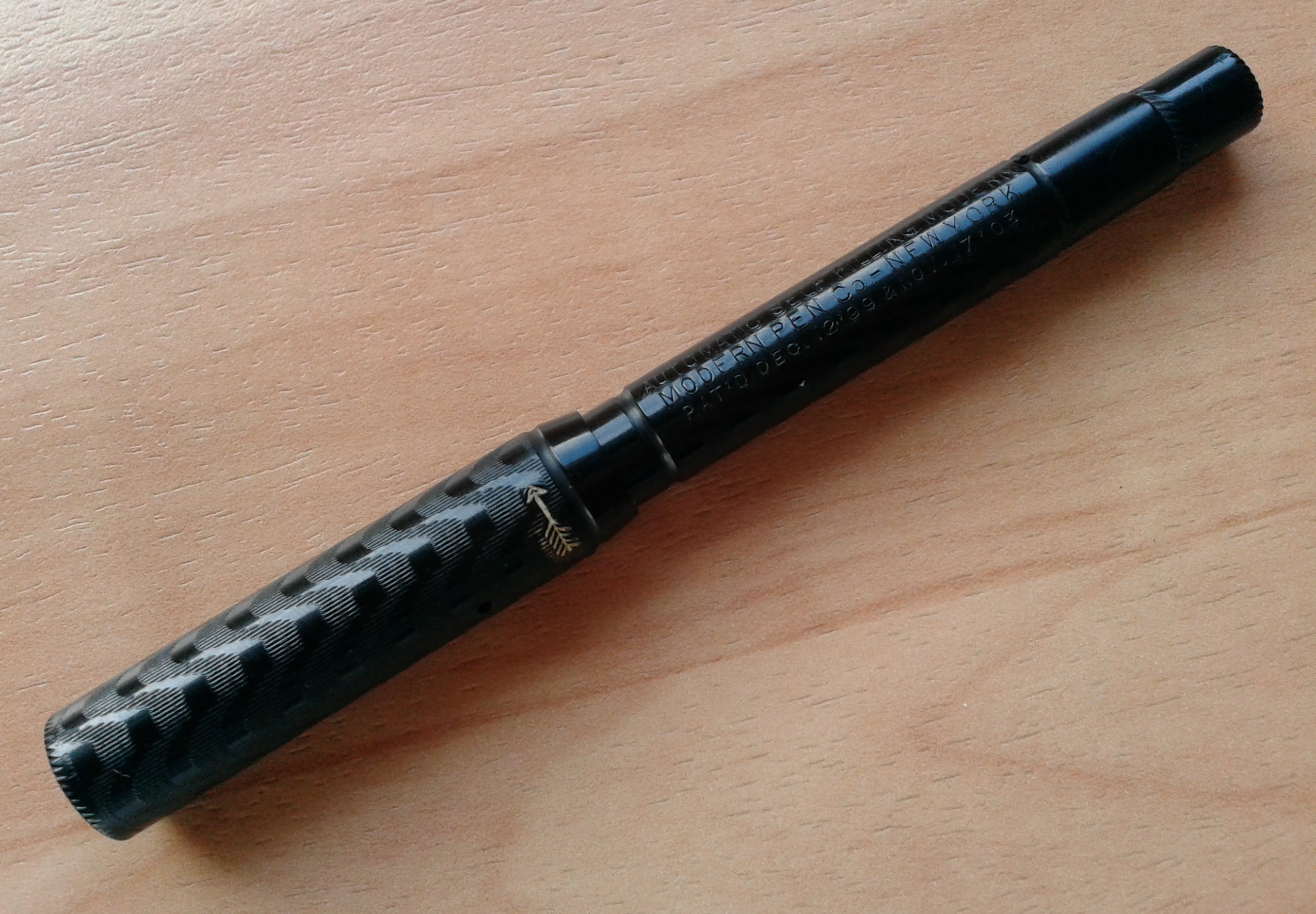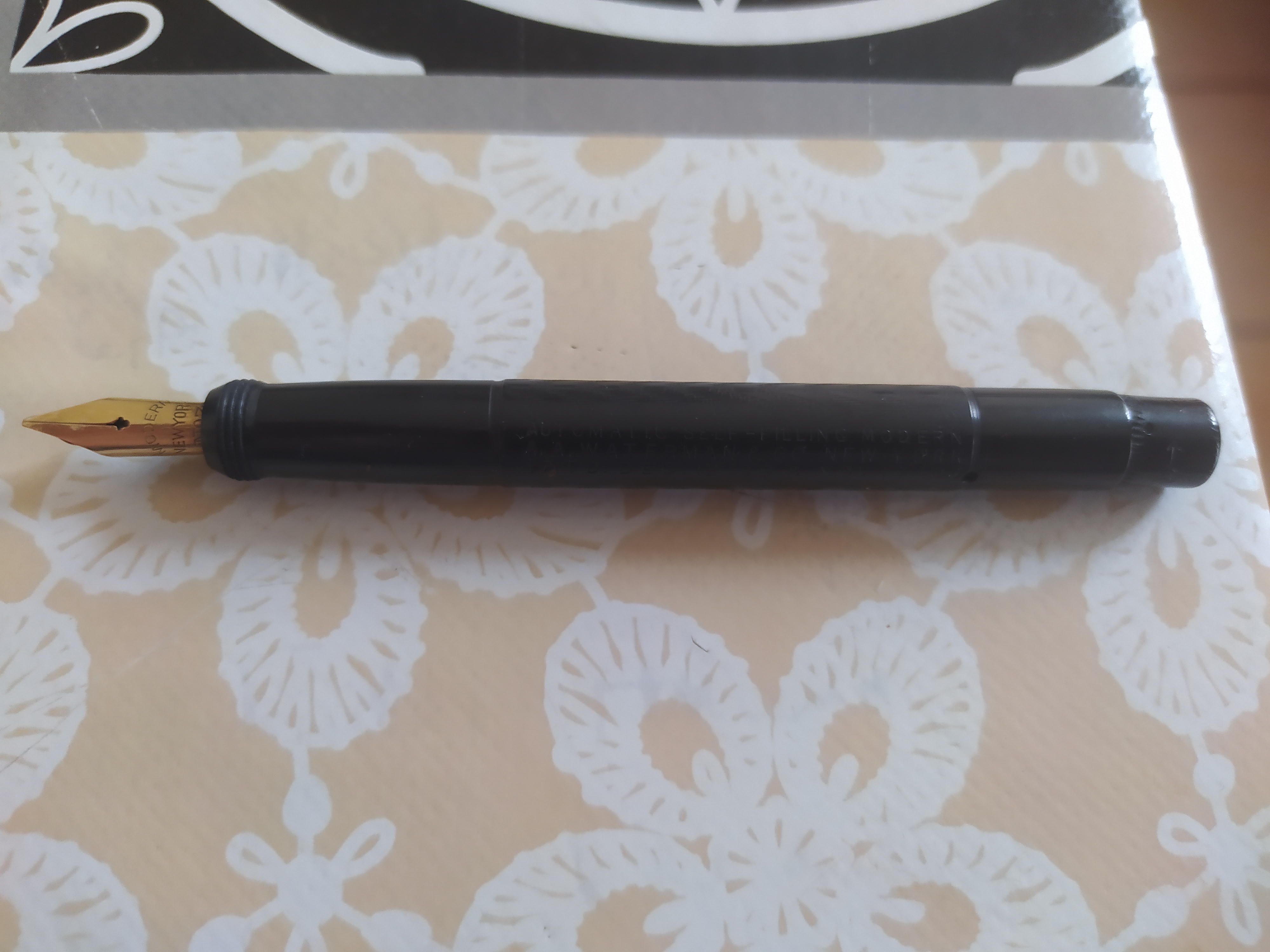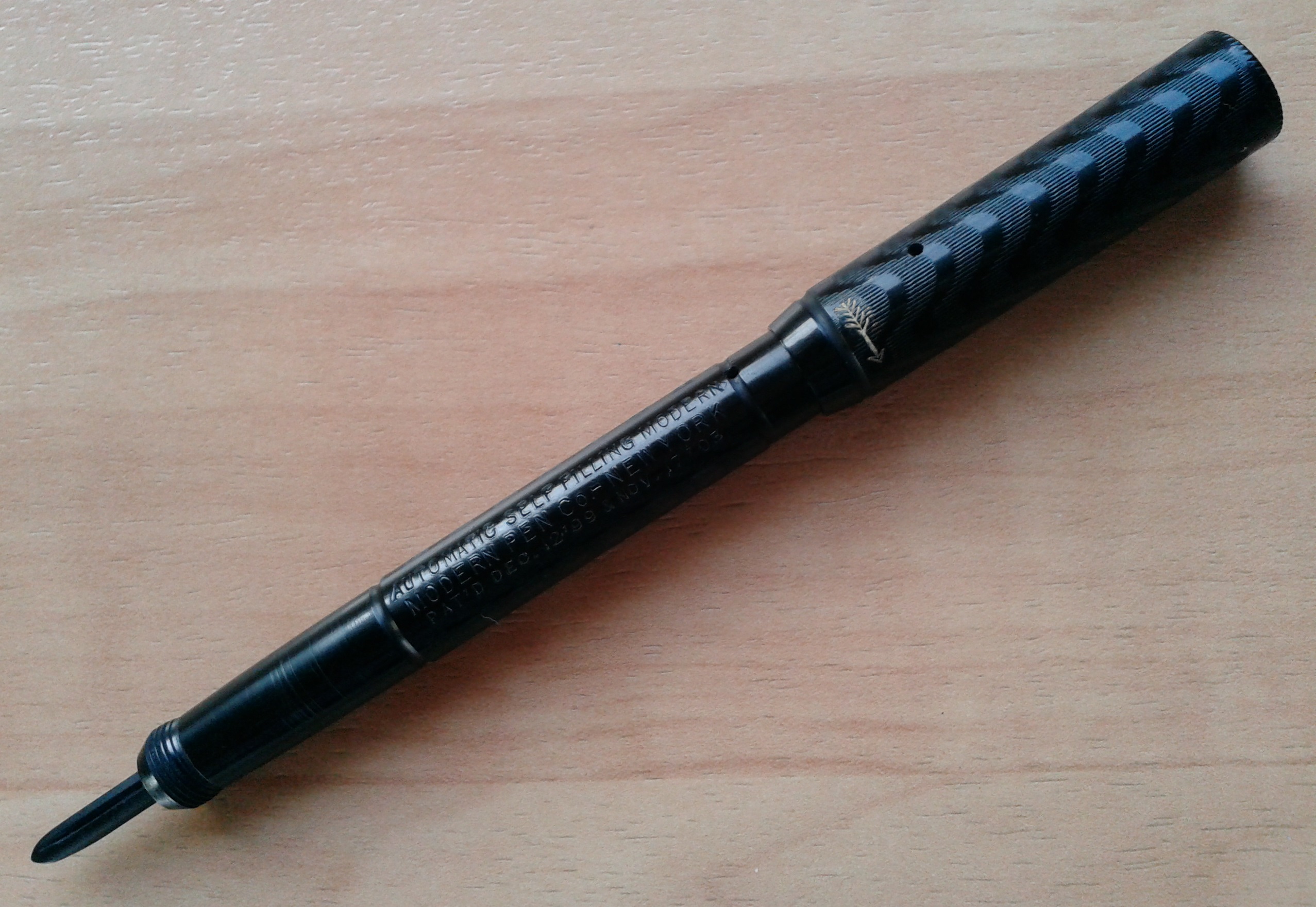La mia ha ancora il suo pennino: un Modern New York N.3 estremamente burroso, ed ha pure una antidiluviana clip arrugginita che ha intaccato in parte l'ebanite del cappuccio