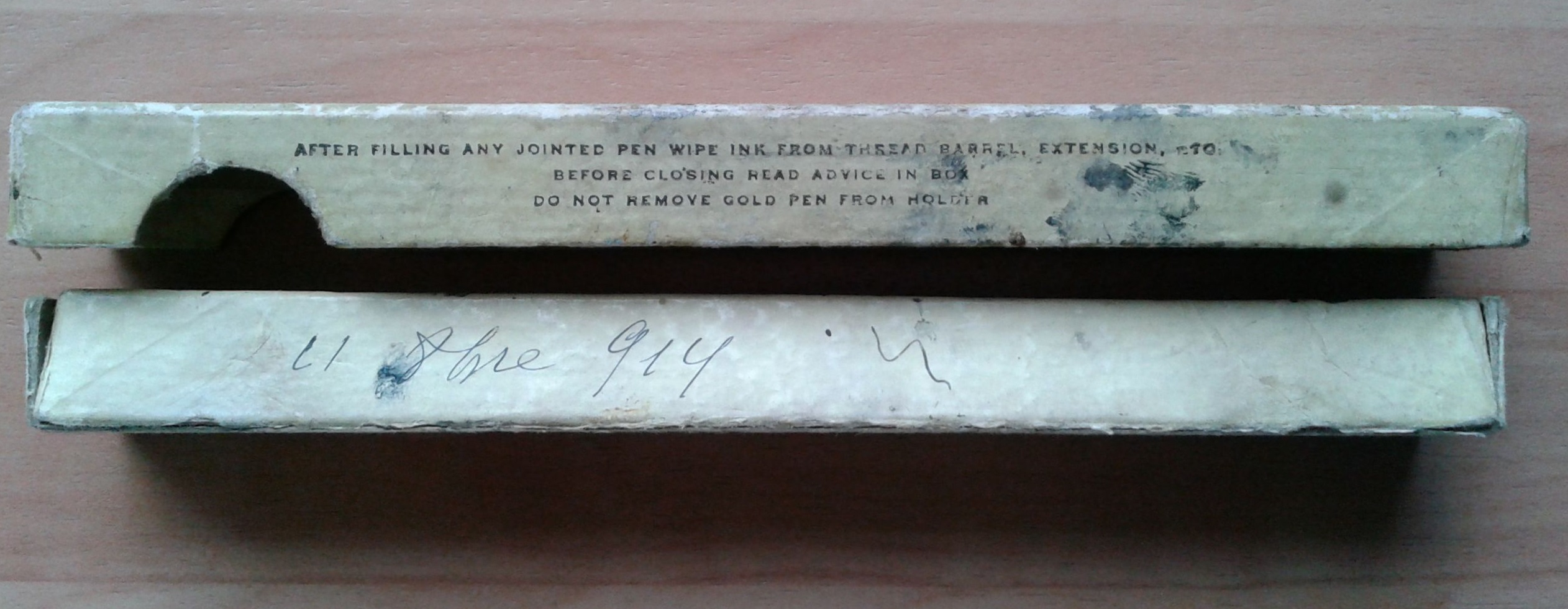 La data sulla scatolina e il nome mi hanno emozionato: l'Italia non era ancora entrata in Guerra, e se ne stava discutendo animatamente: un altro tuffo nel passato, grazie alle nostre preziose stilografiche, che sono anche piccole macchine del tempo...