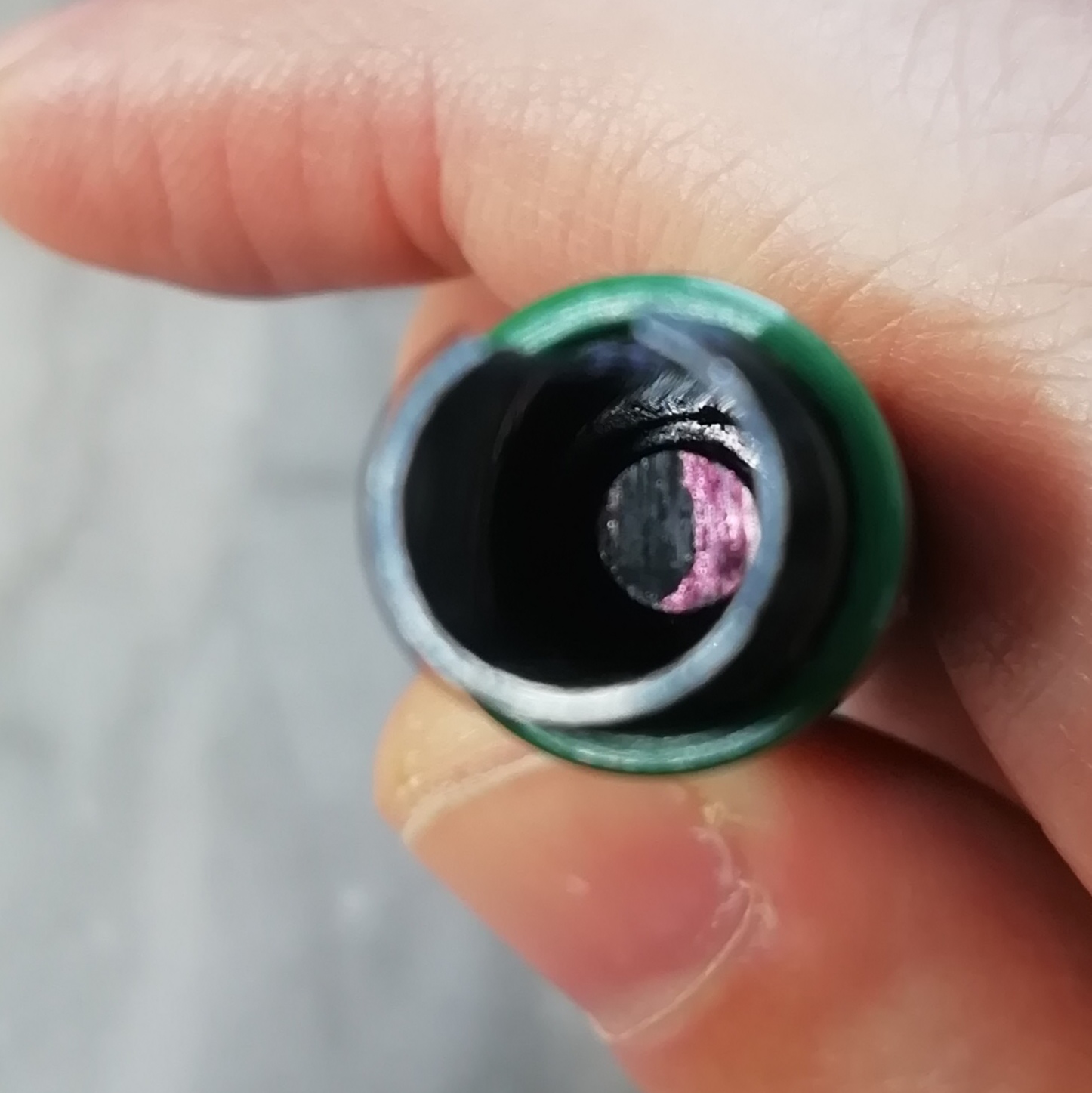Tra l'altro per l'odore che ha, il pezzo filettato sembra essere in ebanite (come l'alimentatore), ma forse è la vite.