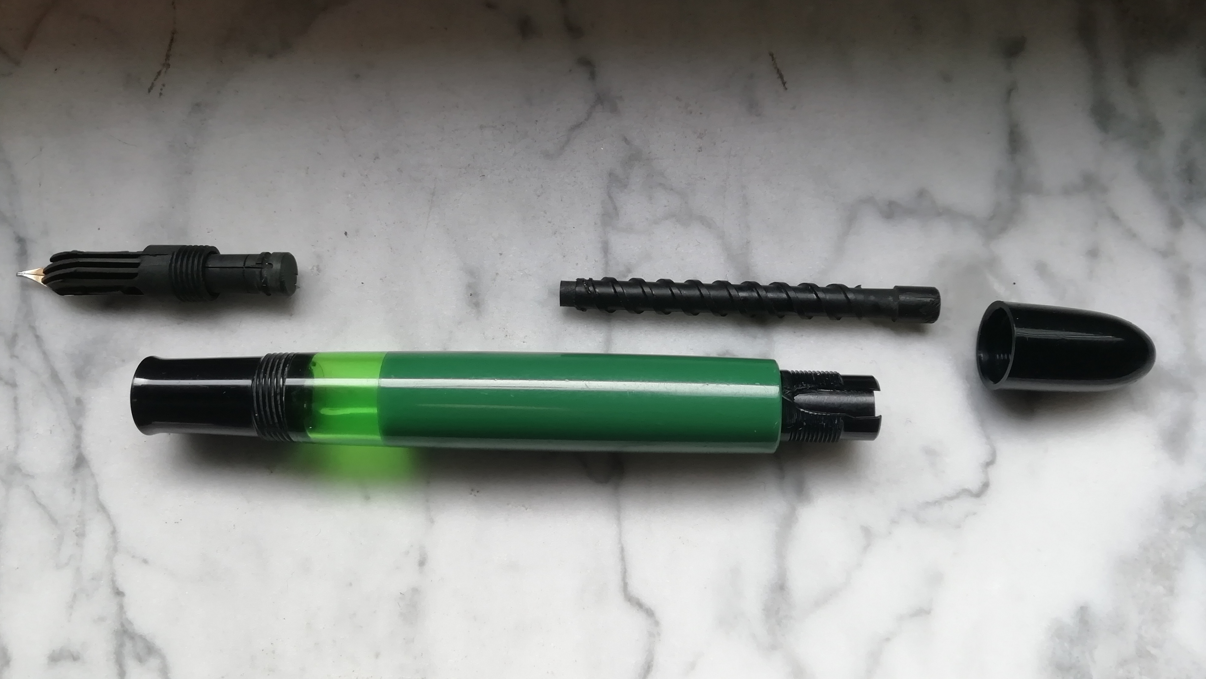 Il pistone proverò ad azionarlo solo dopo un prolungato bagno. Ho visto anche che il gruppo pennino si svita senza problemi.