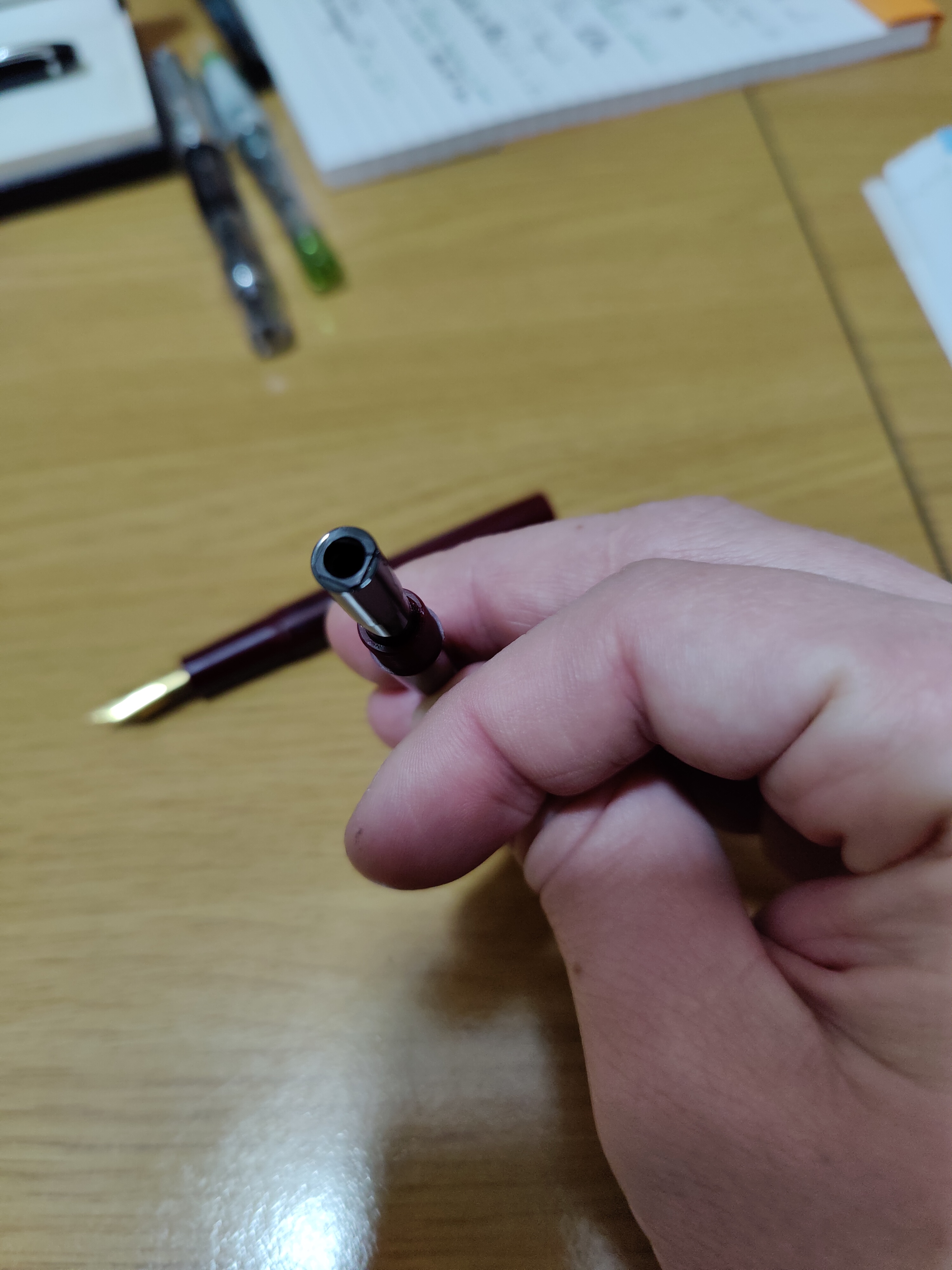 Delle foto nitide invece (che facciano vedere la penna ed il pezzo da tutte le angolazioni e non con soltanto la parte superiore di un pezzo a fuoco) sarebbero invece senz'altro utili. Come tra l'altro ti era pure stato già detto. Magari anche informazioni al contorno tipo la marca della penna, potrebbero aiutare a capire.