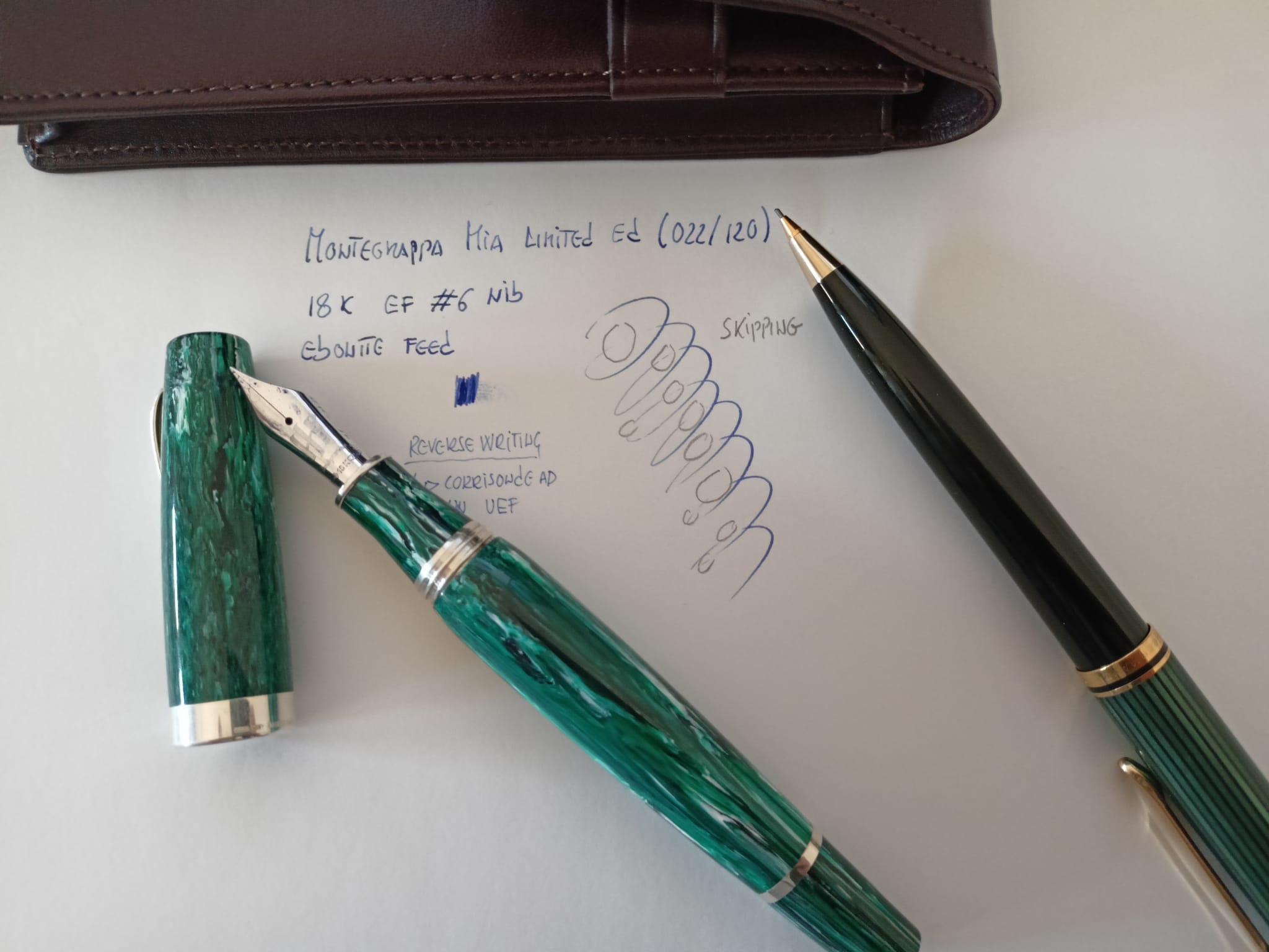 Il "reverse writing" e' quasi inesistente (per carita' ci puo' stare eh). Il tratto e' non sempre scorrevole e ci cono dei salti. L'ho pulita per bene e da un iroshizuku shin kai blue sono passato ad un waterman serenity blue, diciamo piu' fluido. Sembra pero' che l'inchiostro non sia continuo, specie se si cambia direzione o se si scrive velocemente. Ad es se fai dele volute la parte alta del cerchio sembra perderla. Se cominci a scrivere dopo qualche ora di inutilizzo, perde la prima parte della lettera iniziale. C'e' molto feedback.