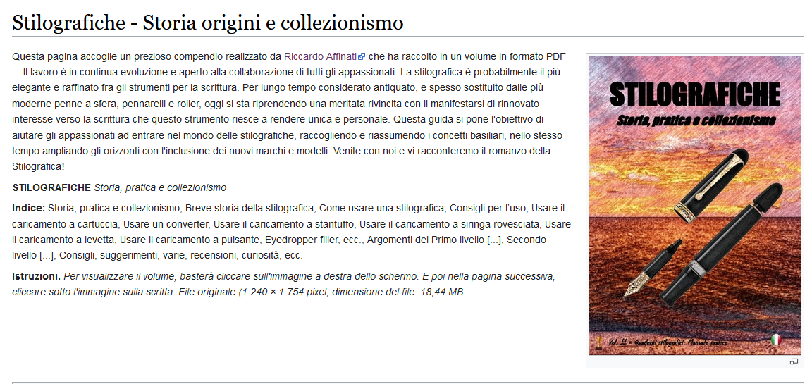 Vi rimetto il link diretto, perchè molto spesso ricevo la domanda dove poterla scaricare. Questa è la prima versione, che nel frattempo è raddoppiata nel numero di pagine e di argomenti. Mi piacerebbe poterne fare una versione cartacea, ma per questioni di copyright (per alcune immagini), dovremmo lavorare a una sua più attenta pulizia formale. Vedremo in futuro se cavalcare l'onda, nel frattempo ci godiamo il magnifico libro cartaceo e gratuito di Stefano Martino sul mondo delle stilografiche.