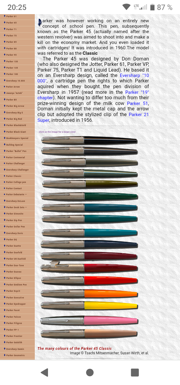 Temo, purtroppo, d'essermi perso qualche puntata, mea culpa, ma non si sembra d'aver visto un articolo sulla stilografica di maggior successo di tutti i tempi: la Parker 45.