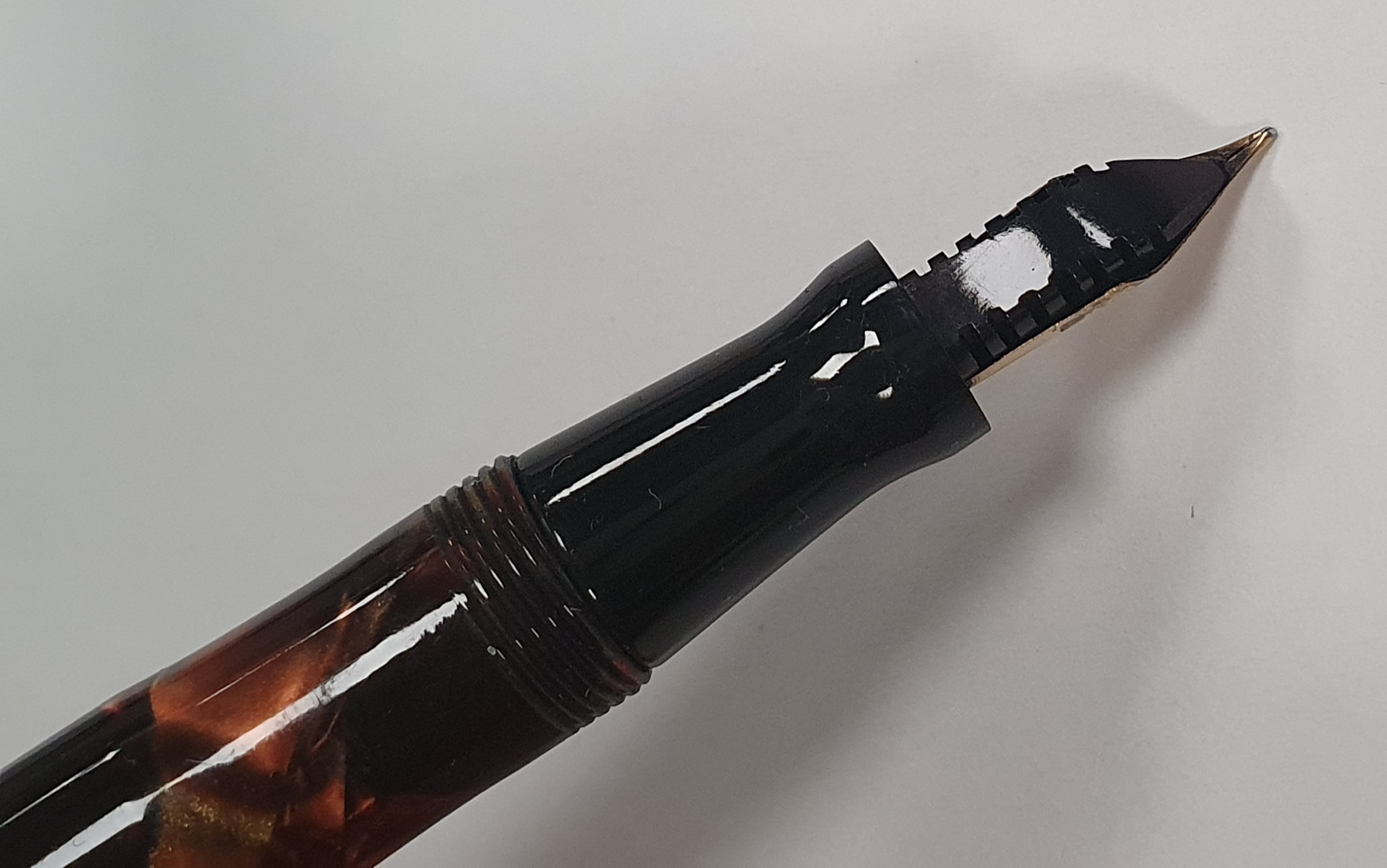 La penna è davvero bella e ben conservata e la celluloide ha selle sfumature davvero notevoli, congratulazioni per averla trovata.