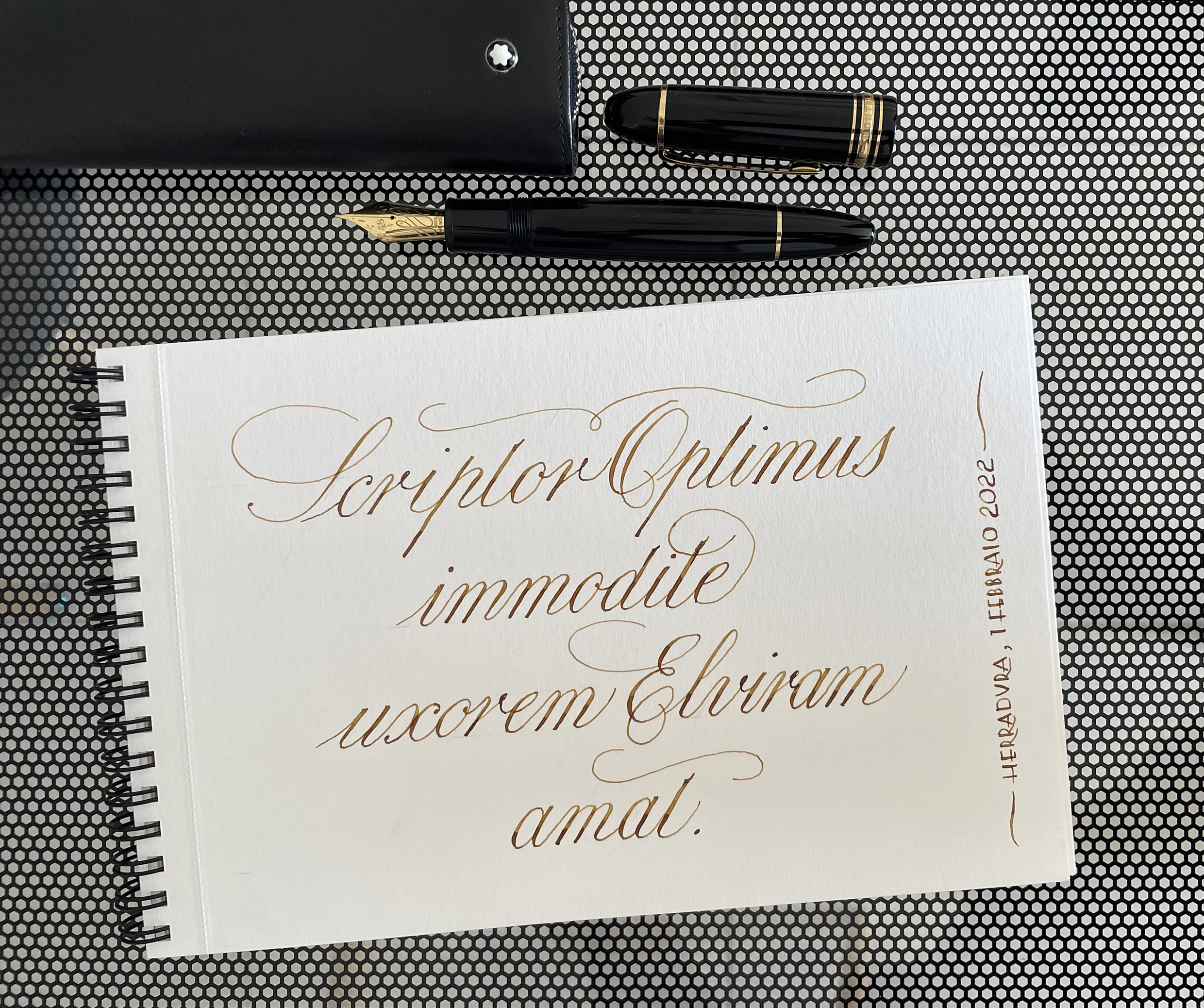 Infine, come mi ero ripromesso, i primi esercizi di scrittura fiamminga (o flamenca). Li ho scritti con il pennino stub della mia Montegrappa Extra 1930 "Acque del Sile", caricata con l'inchiostro Diamine Tobacco Sunburst (il primo) e con il pennino italico 0.7 mm della Montblanc Alexandre Dumas (il secondo), con inchiostro Diamine Grey.