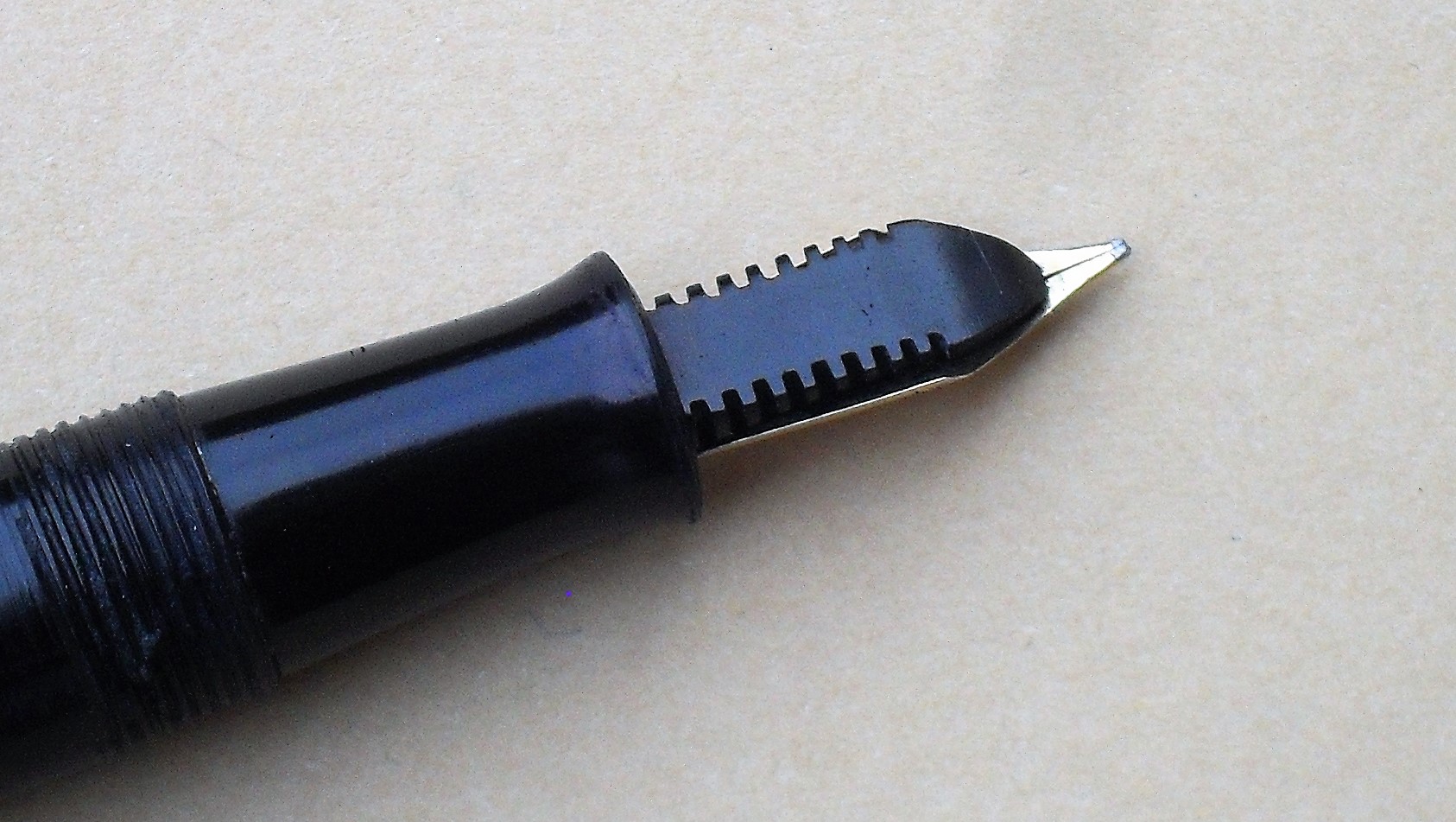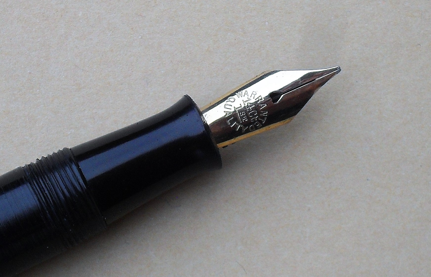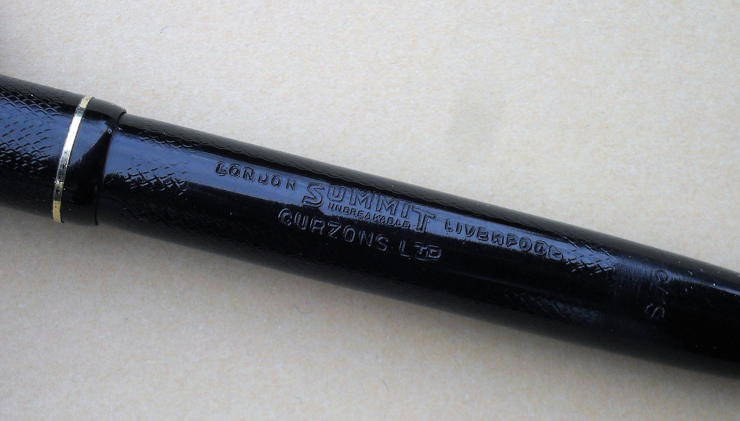 - L’incisione circolare sul pennino, tipica delle punte fabbricate da Lang Pen. Co. Ltd. Questa ditta produceva direttamente i propri pennini, per destinarli alle stilografiche di tutti i marchi di proprietà. Con il 1935, il successo del marchio “Summit” suggerì d’approntare due linee di pennini: una dedicata al marchio, l’altra, generica, per le altre etichette e per marchi d’altri proprietari.