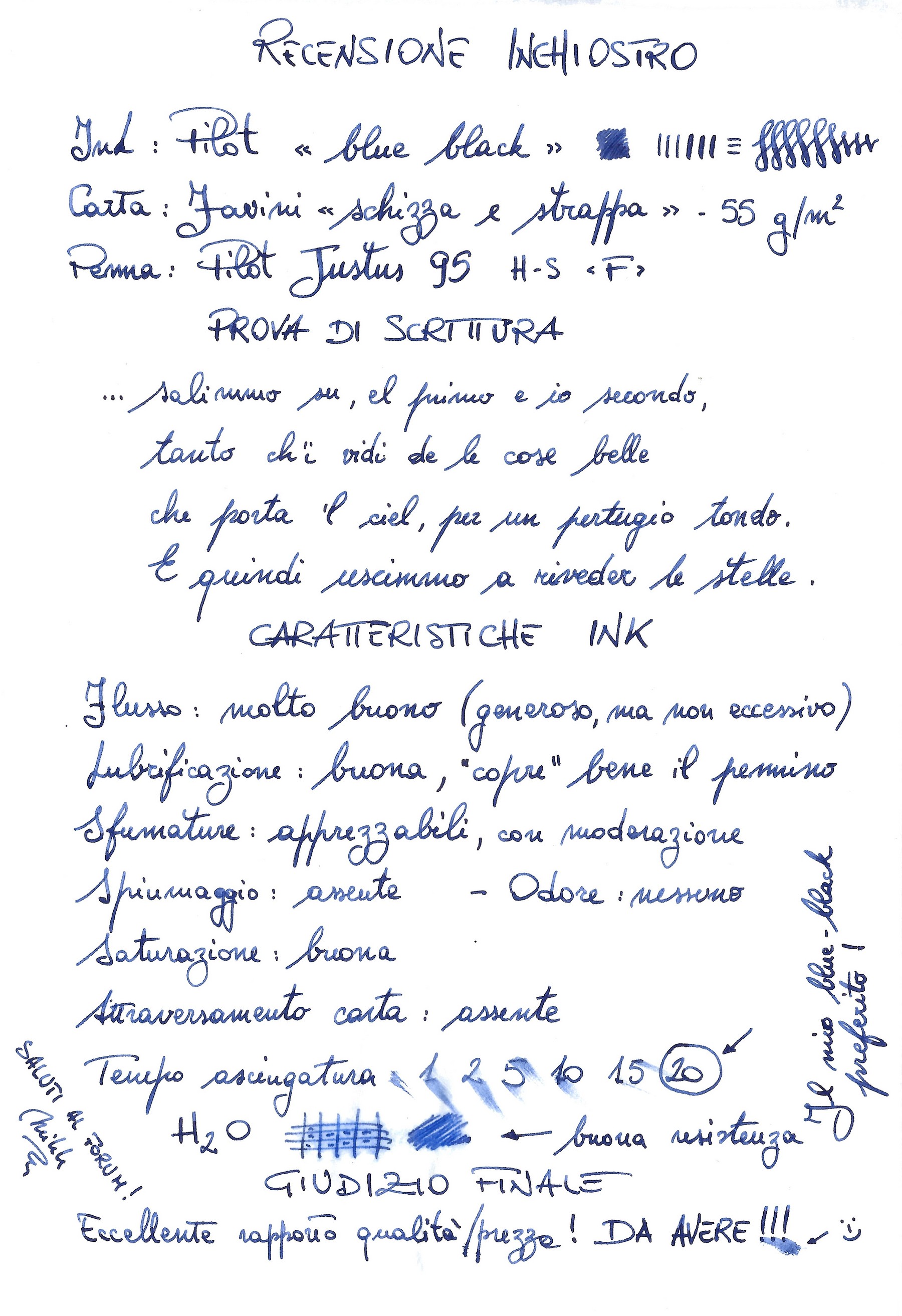 Una piccola recensione del Pilot blue black "liscio" (come lo chiamo io per distinguerlo dalla produzione Iroshizuku).