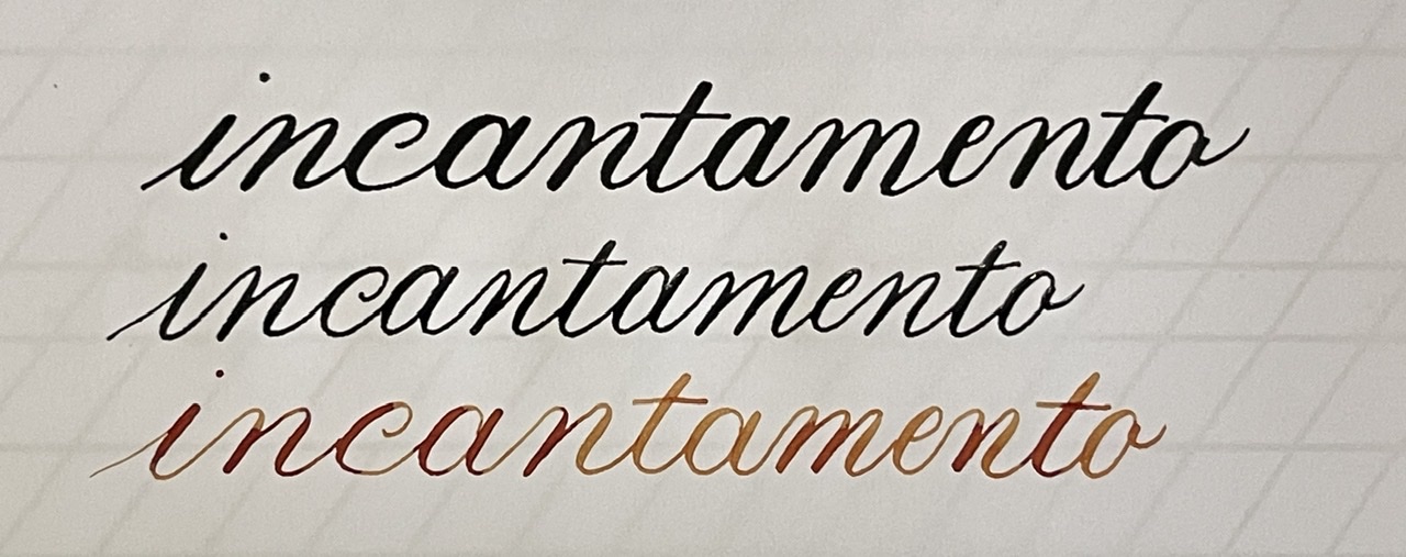 Irishtales ha scritto: lunedì 28 febbraio 2022, 9:57 .in ambito stilografico moderno, per dilettarsi mi basta la cara, fida, pazza e meravigliosa Platinum 3776. Con lei non pretendo di esercitarmi con il Copperplate, ma un buon corsivo con discreta variazione di tratto lo garantisce senza problemi. Pennino in oro, SF (soft fine). Provare per credere ;)