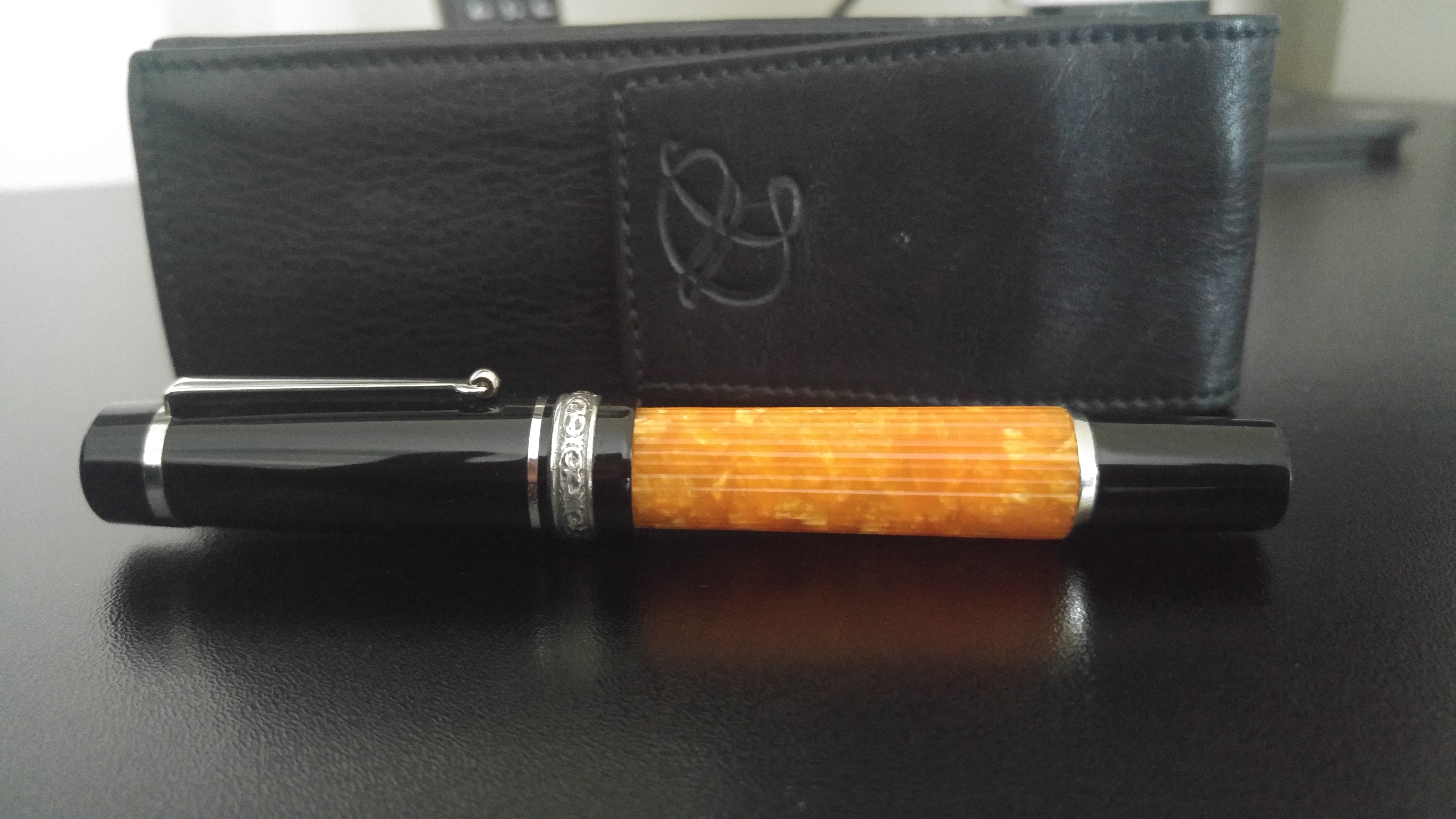 Cercavo una dolcevita poi ho la fortuna di conoscere tramite il circolo stilografico napoletano uno dei fondatori della delta ne ho parlato con lui e dalla sua collezione personale mi ha ceduto questa che era un prototipo a suo dire mai uscita in produzione quindi esemplare unico lo al massimo due .Misura della penna una medium.