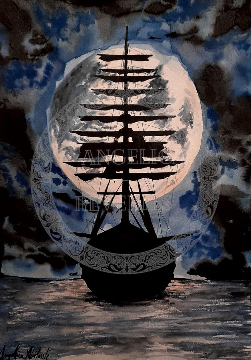 Passandoci veloce sembra una foto più che un dipinto. Eccellente resa delle nuvole controluce e dei riflessi sull’acqua! La nave è dettagliatissima!!! Temo di aver raggiunto il numero massimo consentito di punti esclamativi :lol: