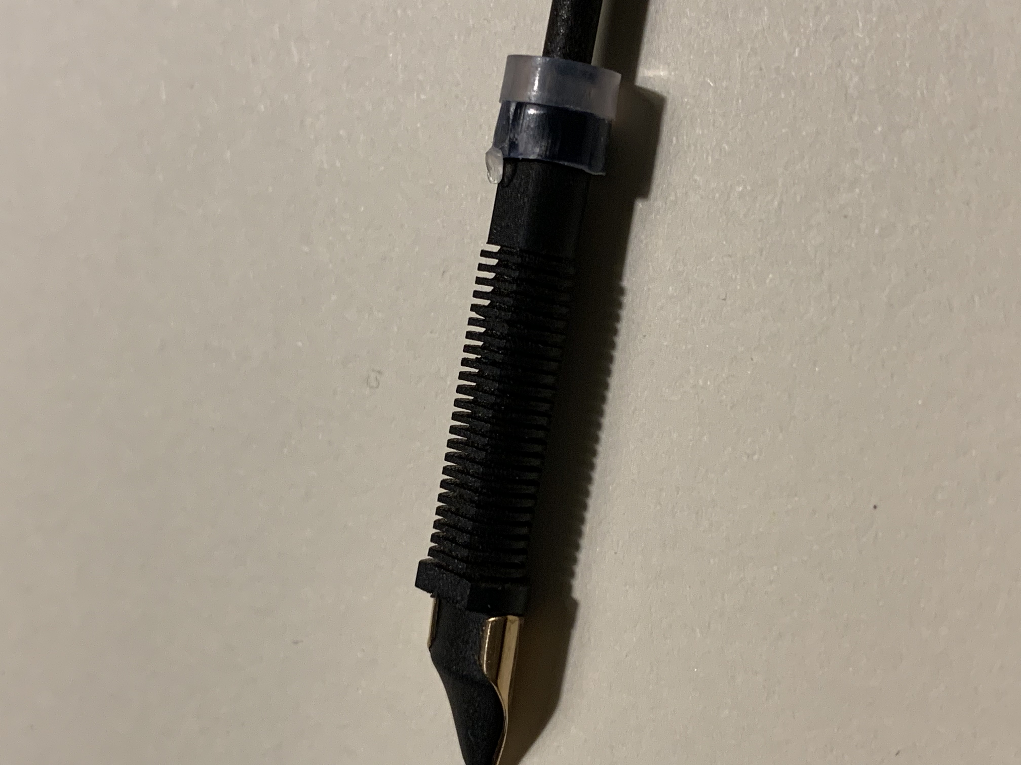 Sfila il pennino dall'alimentazione (occhio che è talmente piccolo e tondo che ci vuole un attimo a perderlo... 😅) e controlla bene il canale di alimentazione. Se hai del filo da pesca faccelo passare dentro in modo da pulire per bene. Va bene anche una pellicola di plastica rigida e sottile.