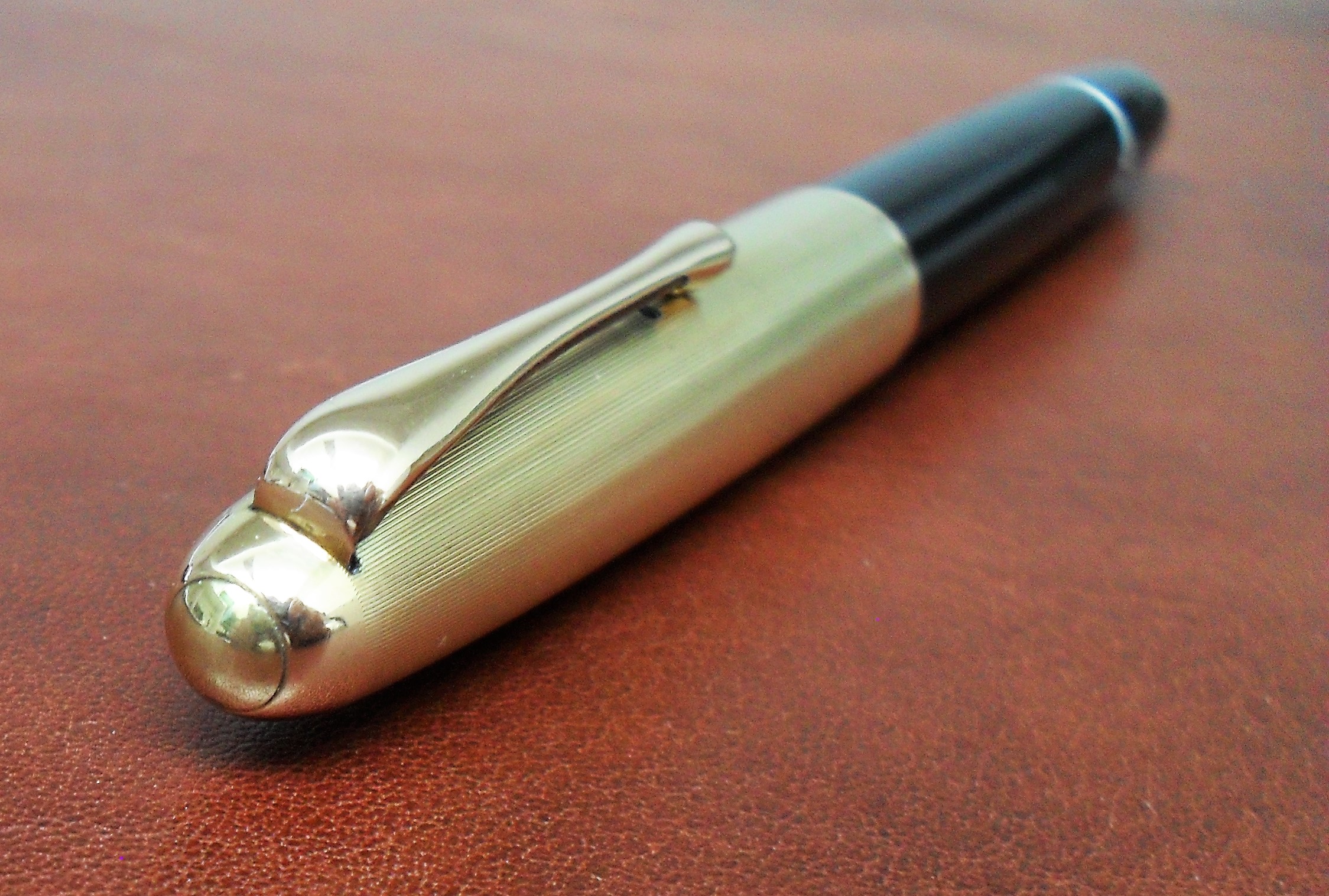Ne ho trovata una anni fa in un mercatino dell'usato, senza cappuccio ma in discrete condizioni e funzionante, l'ho portata a casa per 8€. Le sue dimensioni la rendono confortevole e solida, peccato che abbia un pennino che io definirei M o B, troppo abbondante per la mia scrittura, ma con un ottimo flusso (ha il regolatore a camma e il tappino del fondello con le incisioni in cui, un tempo, erano segnate misura e tipologia di pennino). Per via del pennino e della mancanza del cappuccio l'ho usata davvero poche volte, per ora rimane in attesa di un pennino fine e un cappuccio che forse non arriveranno mai