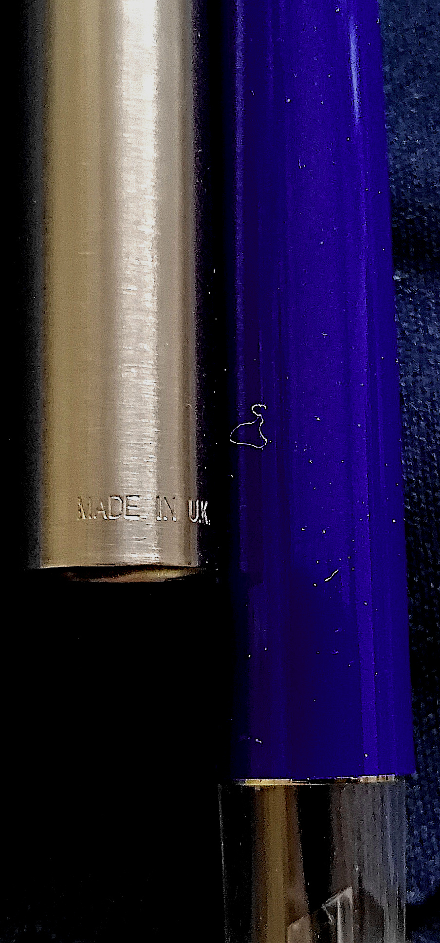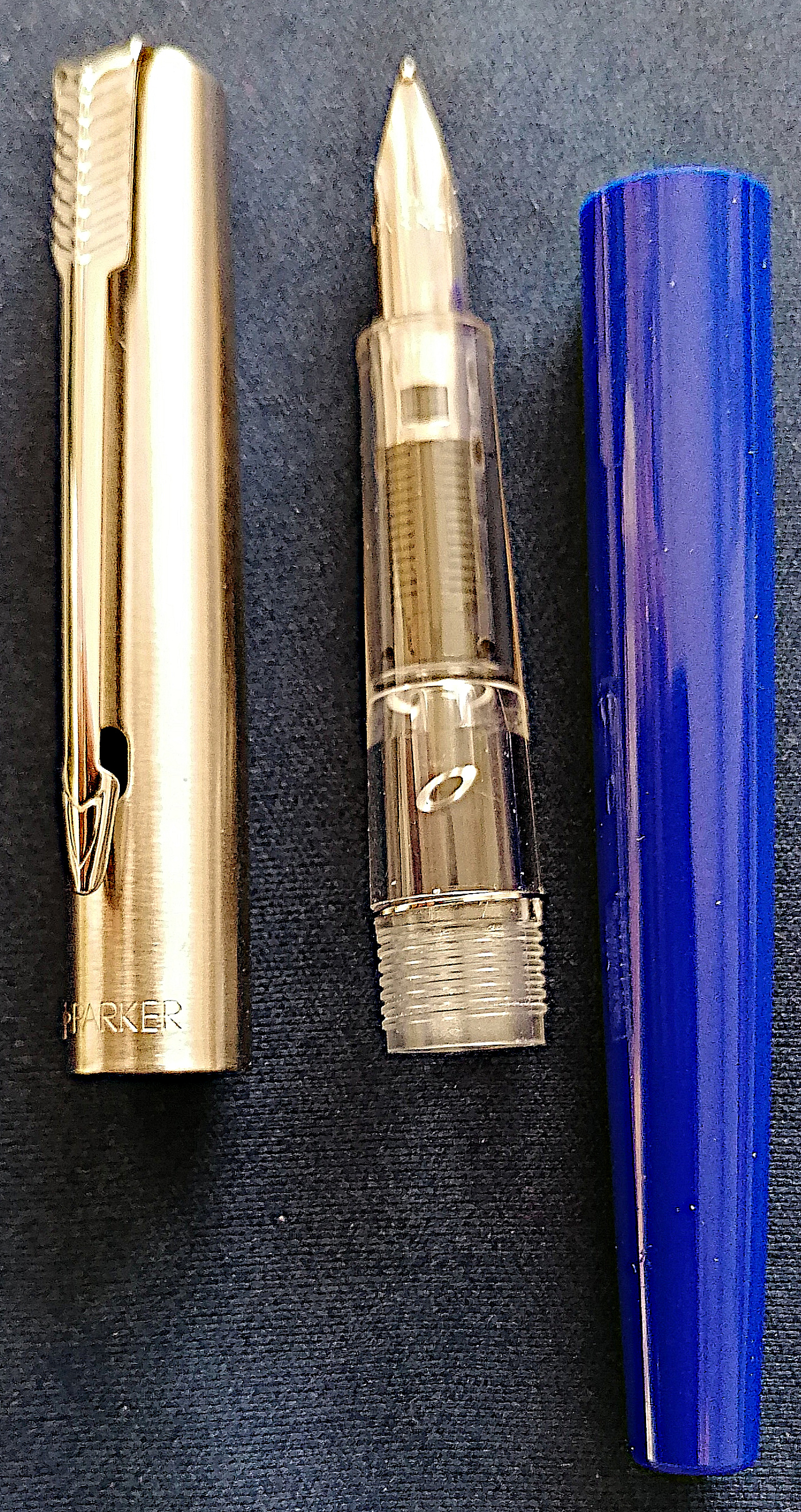 Ma per il momento ho anche la curiosità di capire se sia possibile dare un nome a questo modello di Parker che, con quella sezione trasparente ed il bottone nero di chiusura sul cappuccio, non sono stato in grado di individuare.