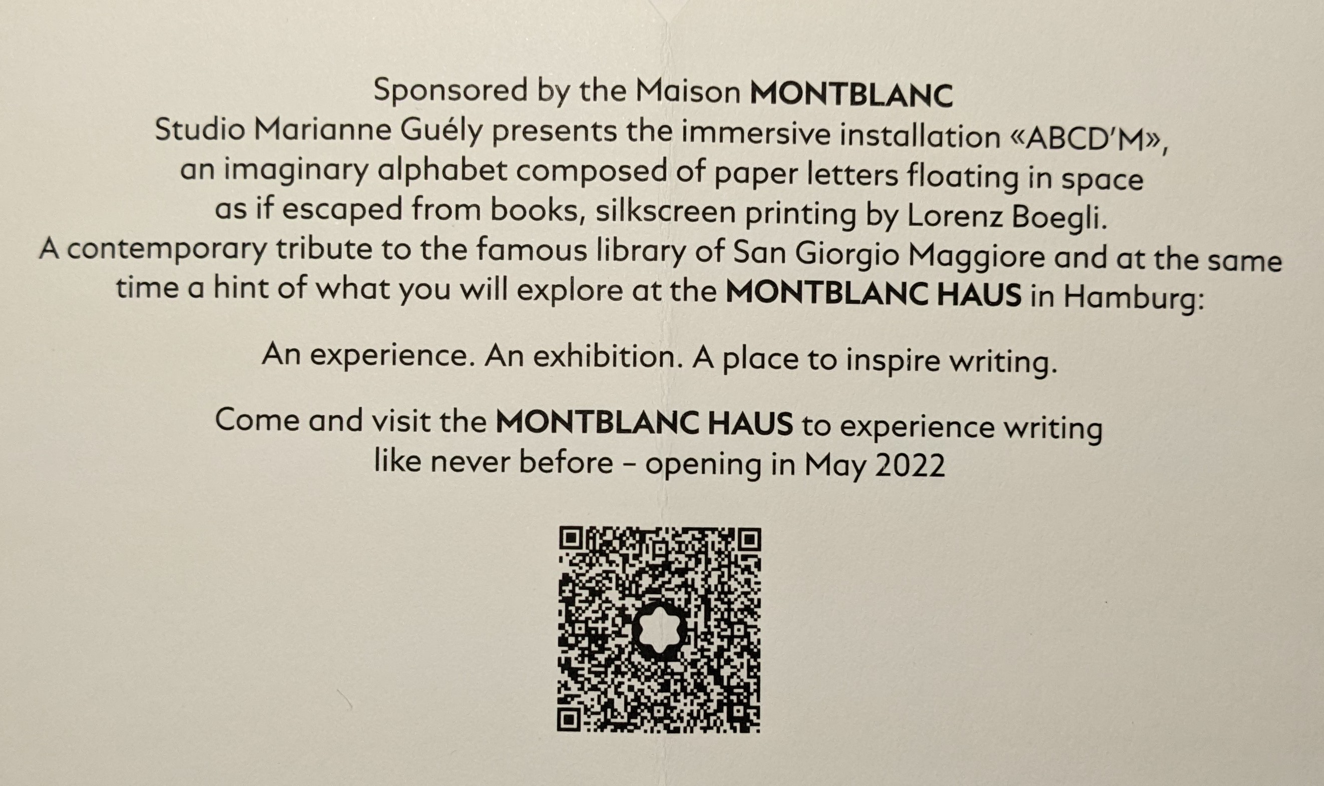 L’evento termina domenica 1 Maggio, il volantino, invece, pubblicizza l’apertura della Montblanc Haus ad Amburgo.