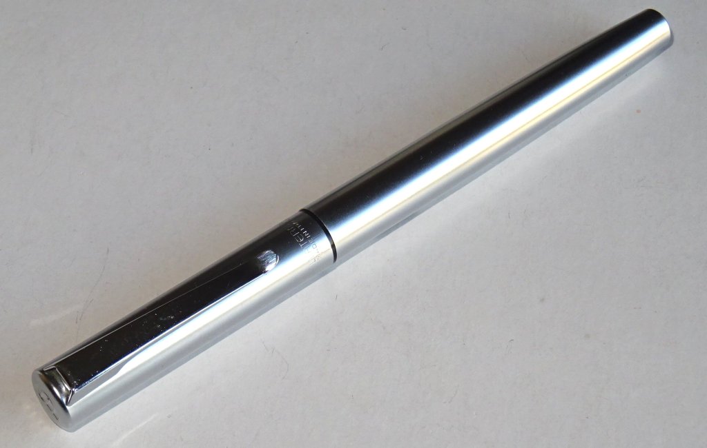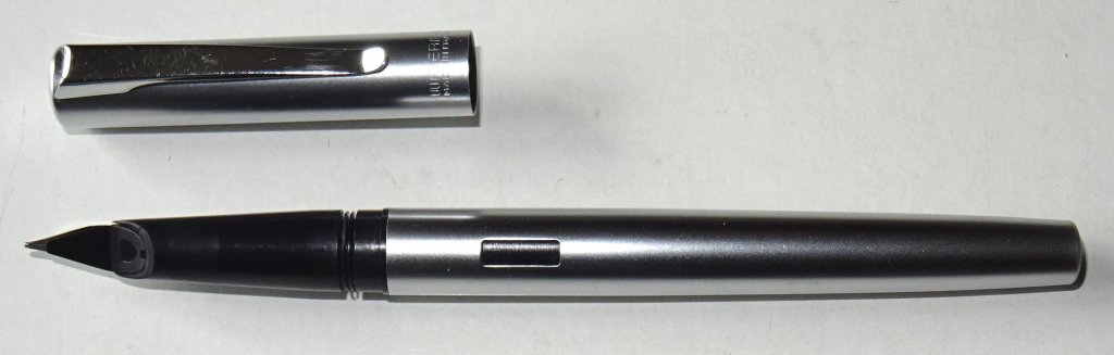 La penna è esattamente identica nelle misure al modello Graduate, con fusto e cappuccio cilindrici in acciaio spazzolato.