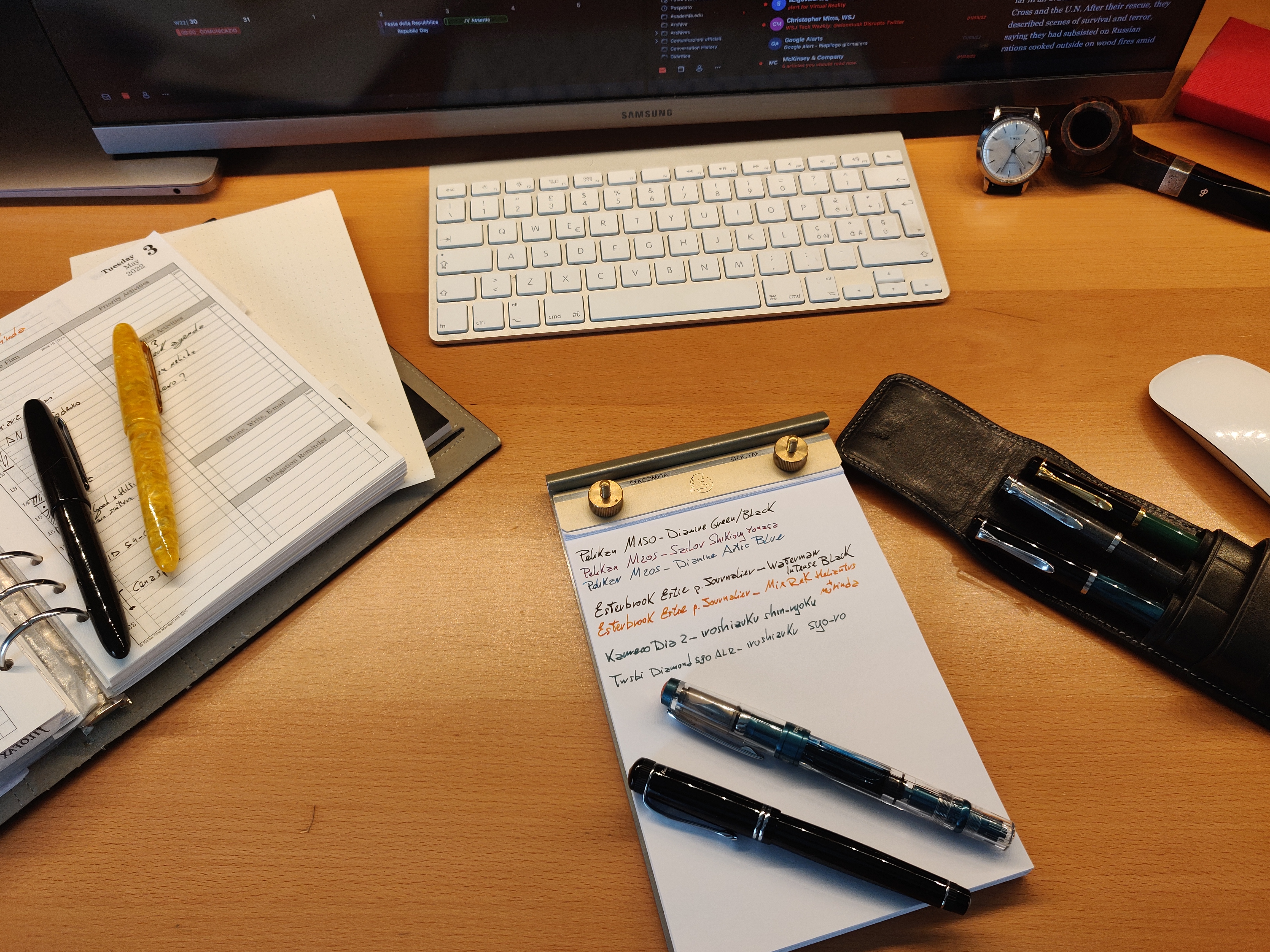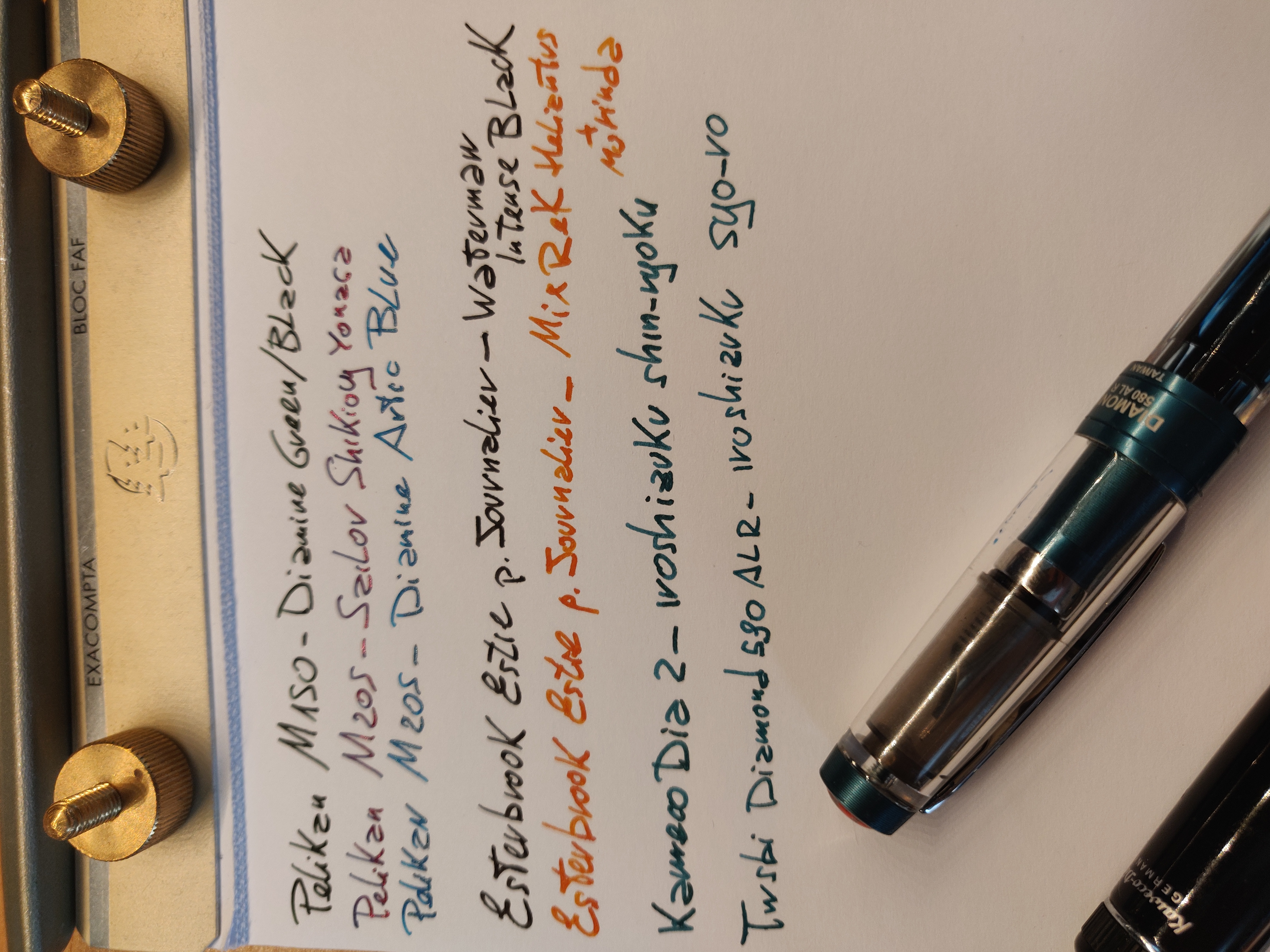 - Pelikan M150 Old style con Diamine Green/Black (inchiostro molto bello e comodo, secondo me... asciuga rapidamente, non spiuma, non trapassa, non annoia