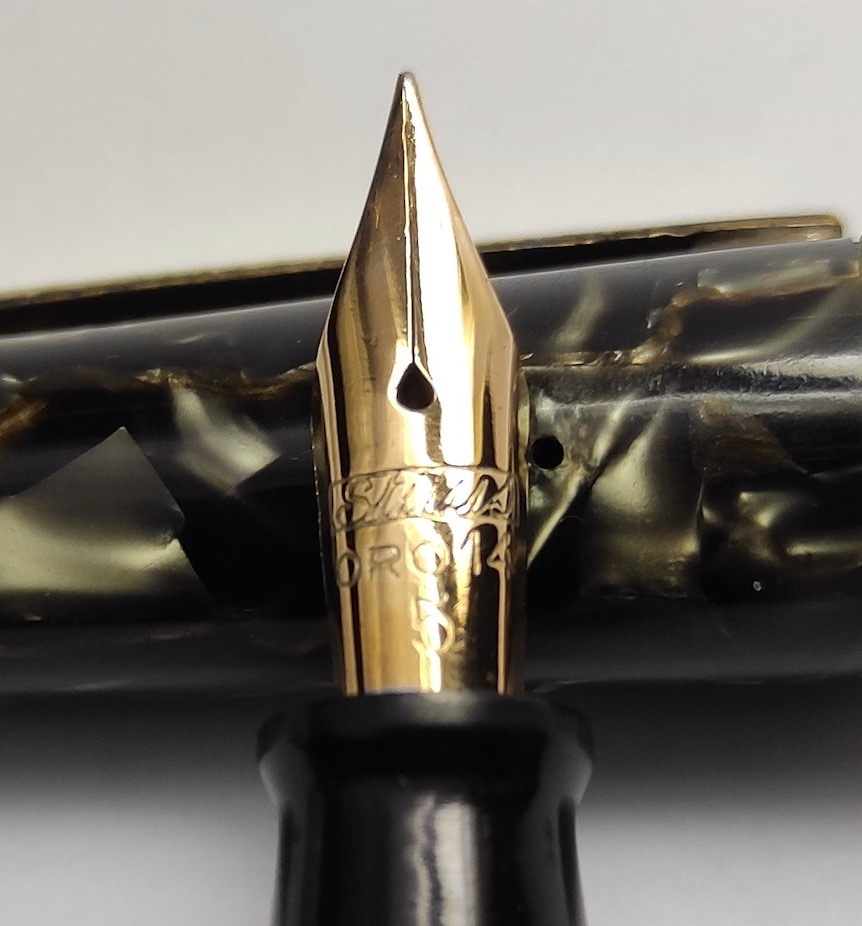 Penna dalla indubbia bellezza, e dalla colorazione che richiama alla mente il marmo di Portovenere , per le venature giallo-oro presenti