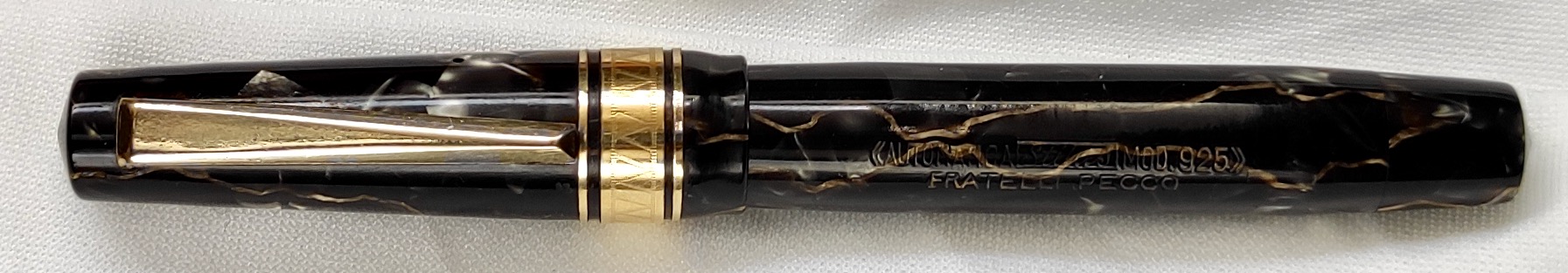 Sul corpo penna la stampigliatura "Automatica Stilus Mod.925" e più sotto "Fratelli Pecco" , ditta in Torino https://www.fountainpen.it/Stilus/it