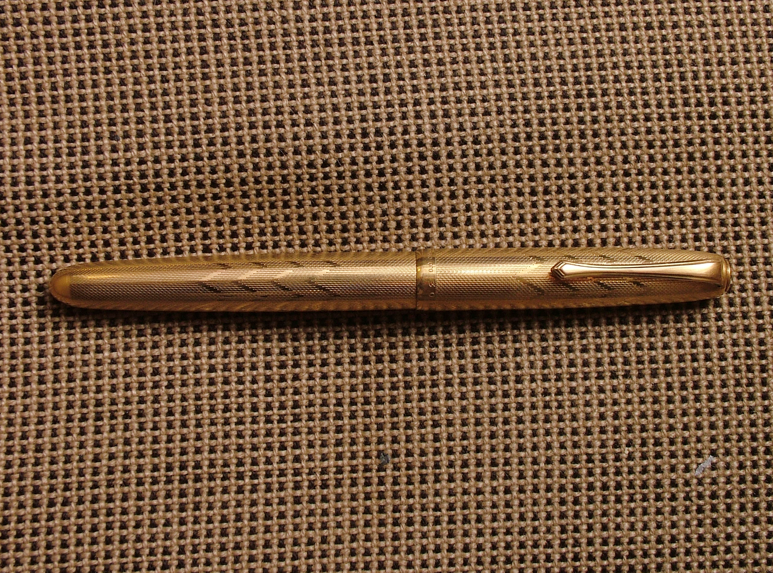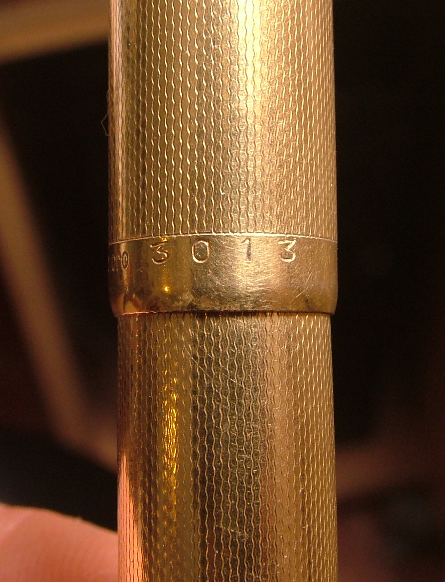 Condivido le foto di questa Parker 51 , conosciutissima e molto apprezzata penna, per una curiosità, non c'è scritto né il nome, né la marca, né il laboratorio che ha prodotto la laminatura, solo 3013 sul rivestimento in metallo della pompetta, sul fusto e sul cappuccio insieme all'incisione laminata oro.