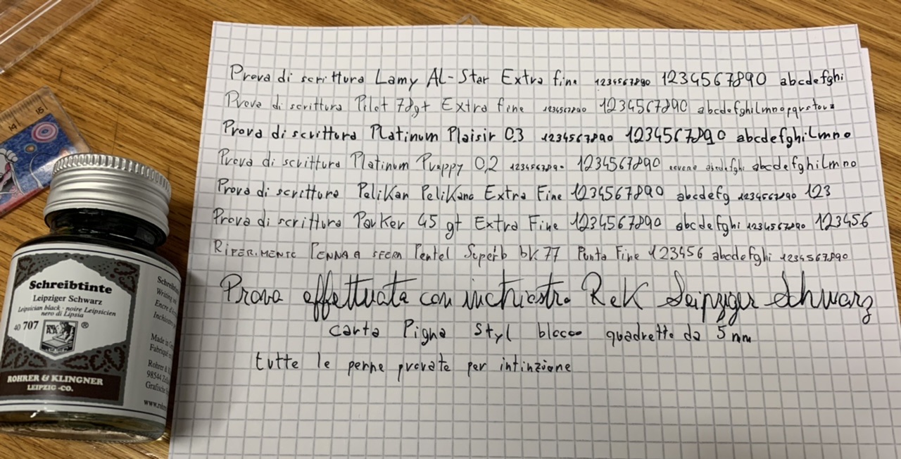 Allego anche una comparativa di scrittura effettuata per intinzione su carta Blocco PignaStyl con quadretti da 5mm