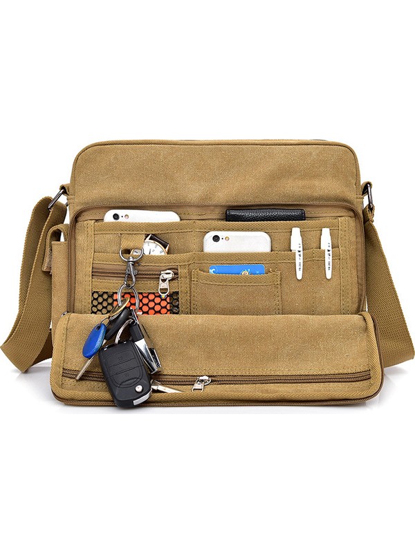Sia mio marito che io usiamo le borse "messenger" che sono comodissime perchè hanno la parte frontale piena di scomparti in cui si può tenere tutto a portata di mano, incluse due o tre penne, un portamine, etc. Tipo questa: