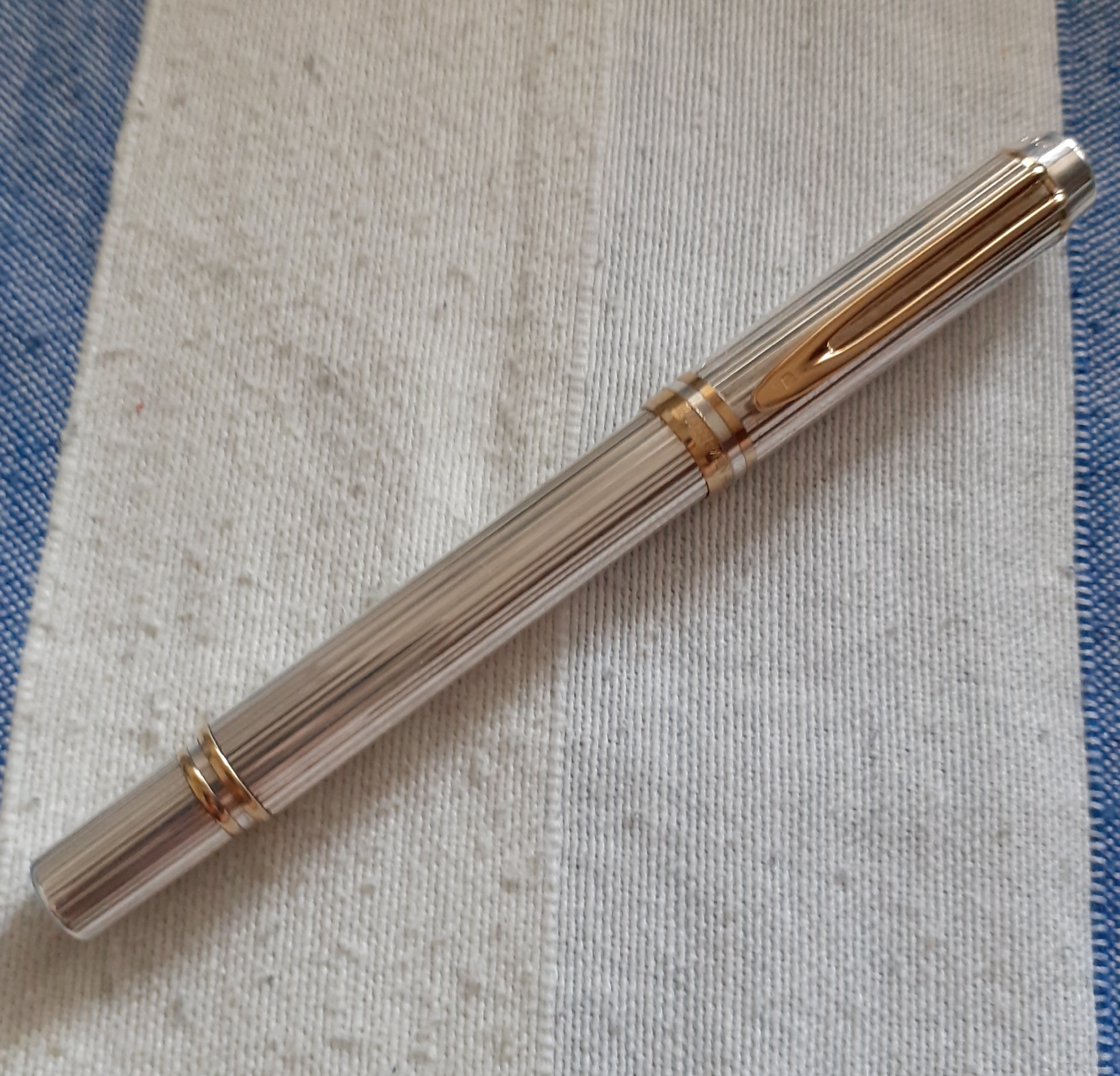 Camminata veloce fra i banchetti del locale mercatino mensile, ho visto brillare qualcosa in una vetrinetta. Ce l'ho già mi son detto e via avanti... poi però.... il fondello è in argento!!!!! Ed eccola qua, man 100 edizione limitata 800 pezzi per il venticinquesimo di waterman Italia