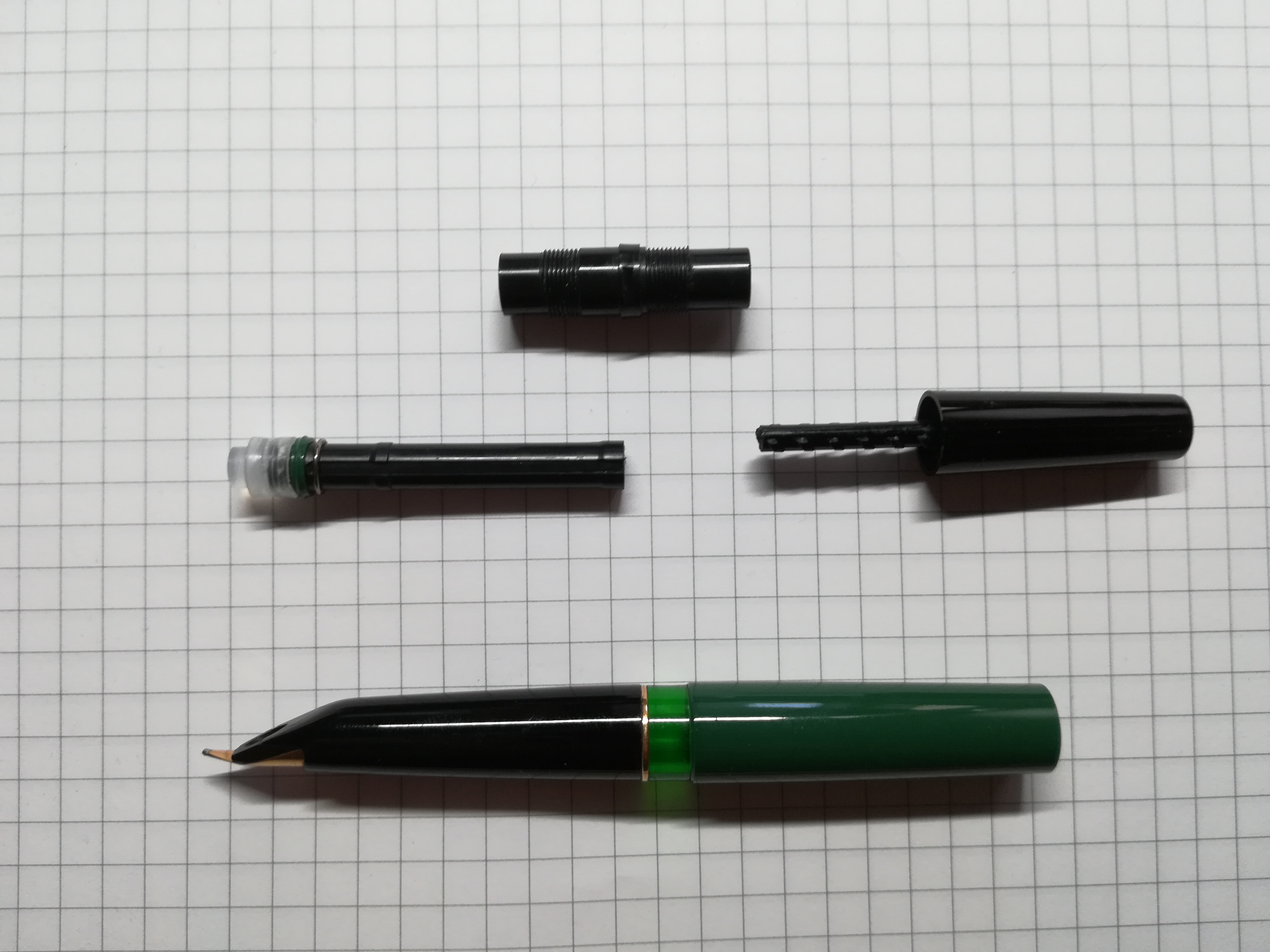 Per quanto riguarda tutto il gruppo pistone, lo si può svitare e avvitare utilizzando l'attrezzo che viene dato insieme alle Twsbi eco (è un filino stretto ma non incide sulla plastica) ma il suo montaggio è particolare. Al primo tentativo mi risultava impossibile finire di avvitare il fondello e restava sempre scoperta la parte con le due piccole parti orizzontali per la chiave, fino a quando non ho letto su un vecchio thread di fpgeek di provare con l'attrezzo della Twsbi.