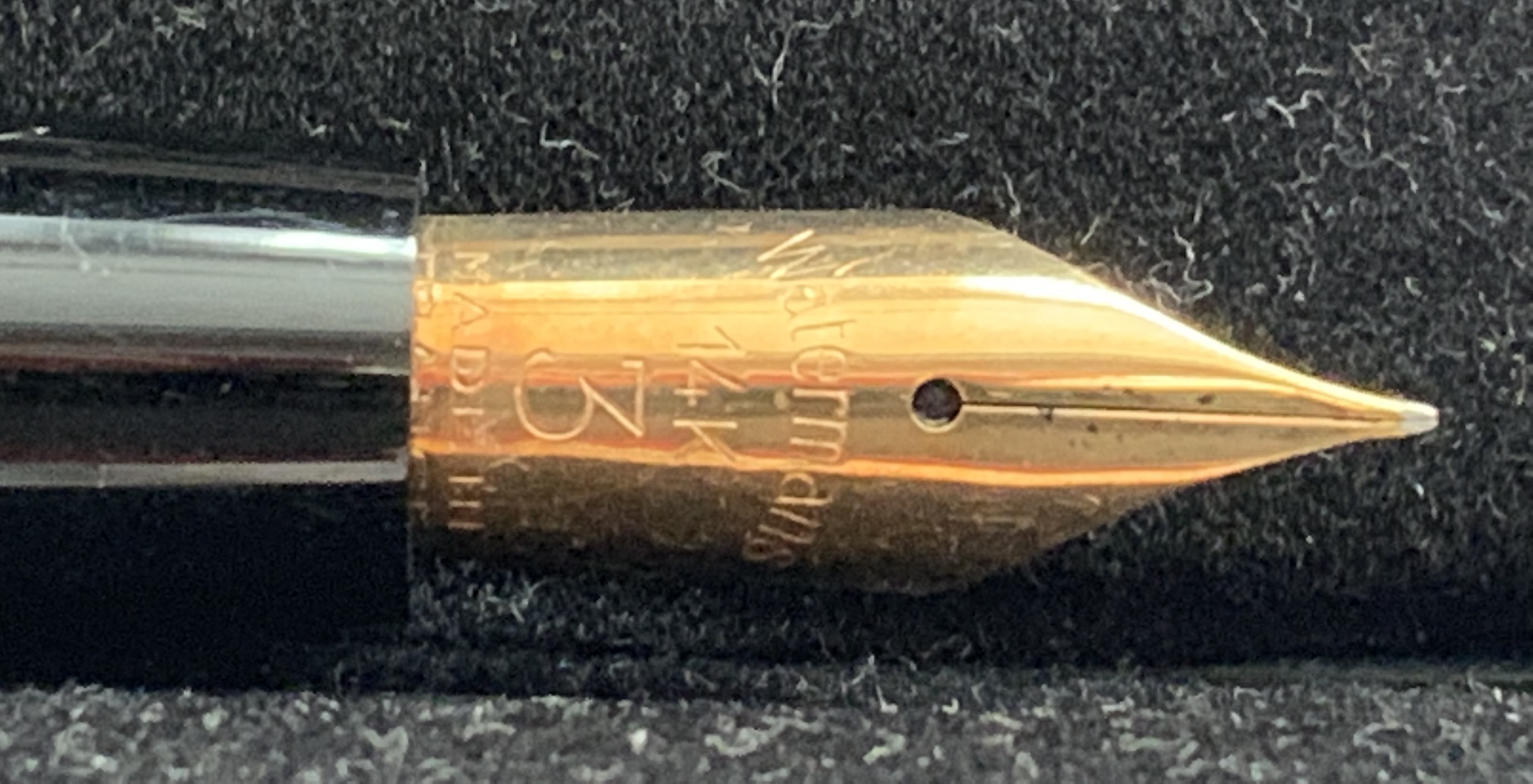 Waterman's 14k 3 made in france, senza indicazione del tratto (a meno che sia il numero "3") e con foro di sfiato circolare.