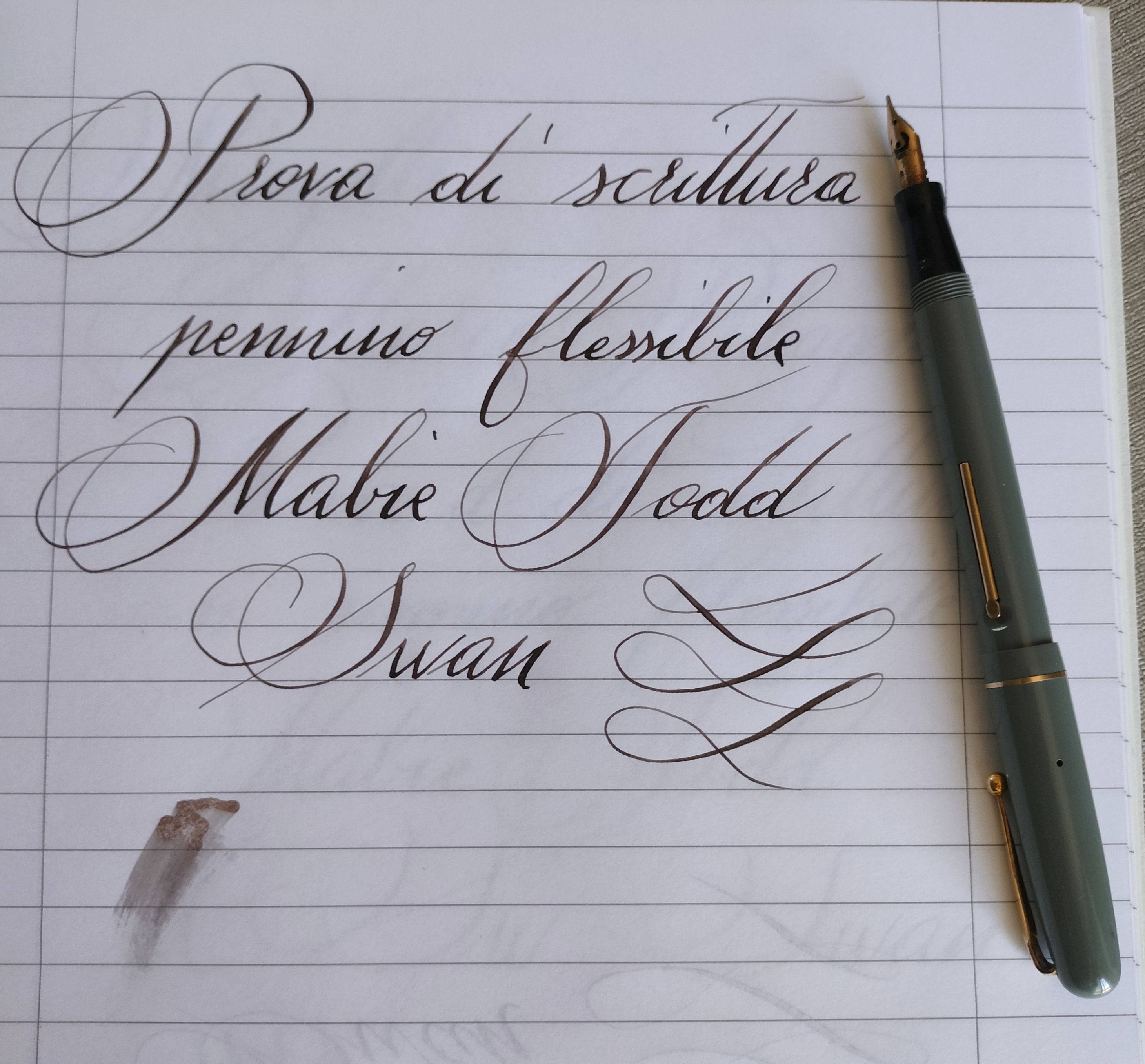 vorrei sottoporvi il risultato di una prova di scrittura (senza troppe pretese) con pennino flessibile eseguita scrivendo a velocità "normale".